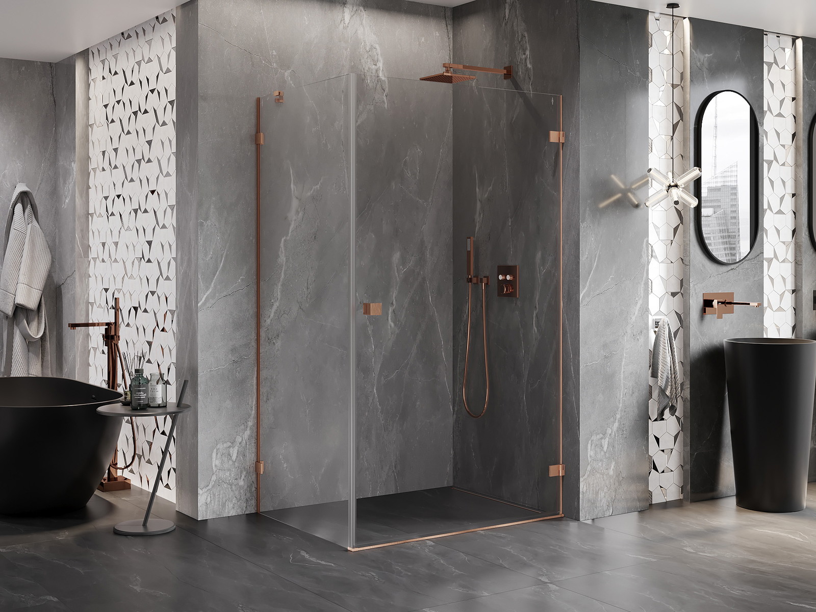 Mexen Lunar-B dešinysis dušo kabinas atveriamas 100 x 80 cm, skaidrus, šepečiu šlifuota varis - 832-100-080-65-00-P