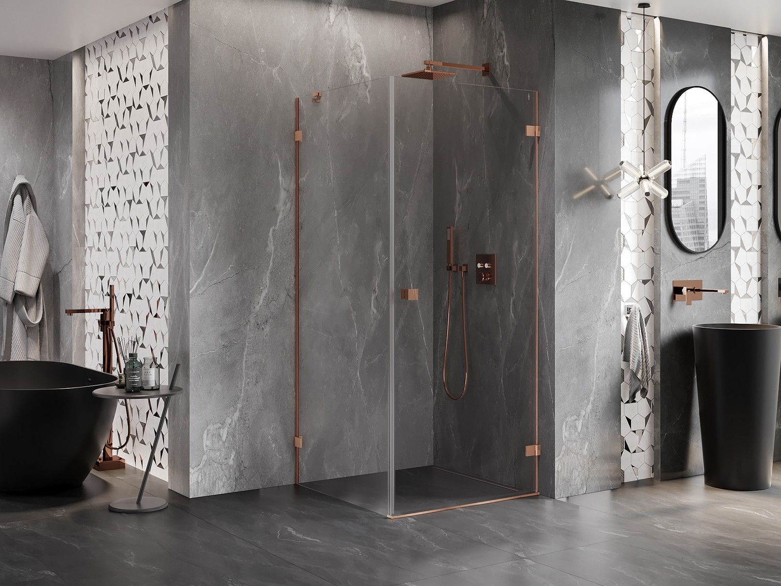 Mexen Lunar-B dešinė montuojama dušo kabina 90 x 90 cm, skaidri, šlifuota vario spalva - 832-090-090-65-00-P