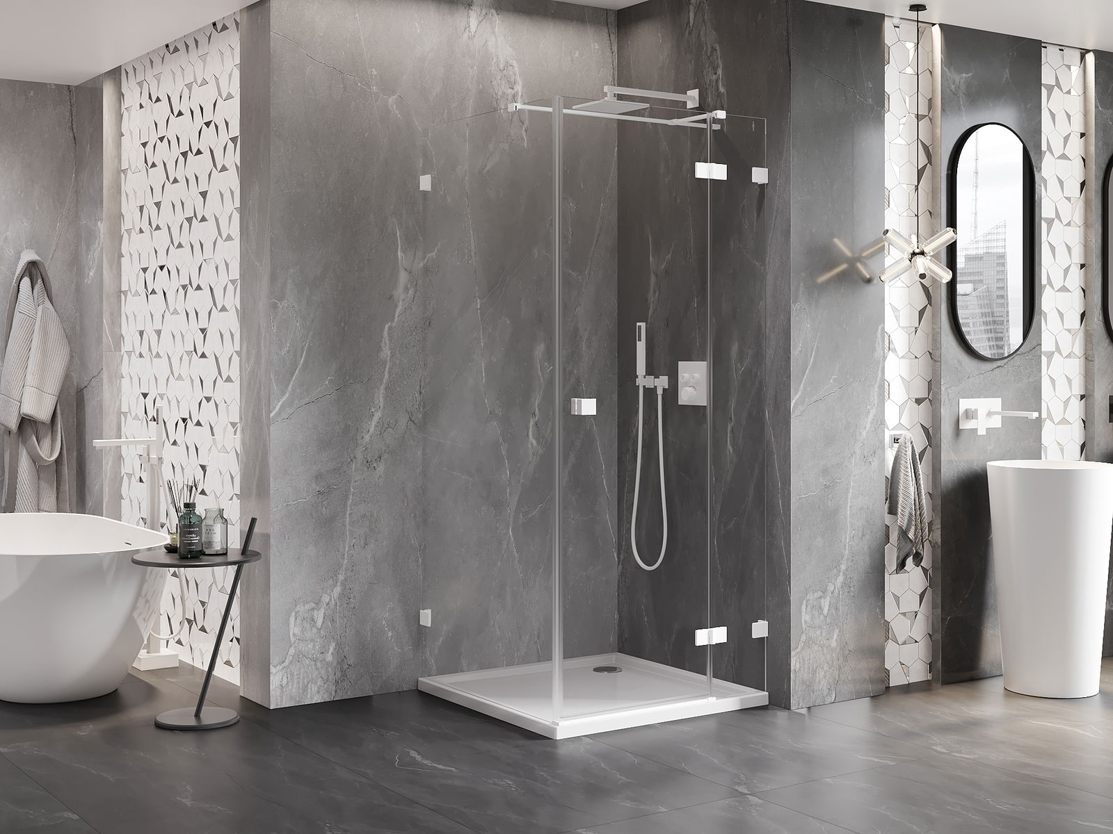 Produktą, atsižvelgiant į poreikius, galima sumontuoti tiek ant dušo padėklo, tiek tiesiogiai ant grindų. Universalus montavimo būdas leidžia pritaikyti produktą įvairių tipų vonios kambariams ir erdvės konfigūracijoms.