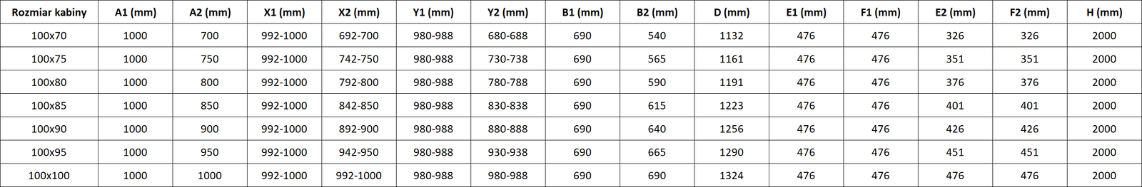 Dušo kabinos, durys ir sienelės yra standartiškai pritaikytos montuoti ant nustatytų matmenų dušo padėklų. Būtent šie matmenys nurodomi gaminio pavadinime arba aprašyme. Tačiau atkreipkite dėmesį, kad faktiniai elementų matmenys gali šiek tiek skirtis nuo vardinių verčių. Planuojant montuoti tiesiai ant grindų, rekomenduojama atidžiai patikrinti išorinius matmenis ir elementų išdėstymą pagal techninį brėžinį.