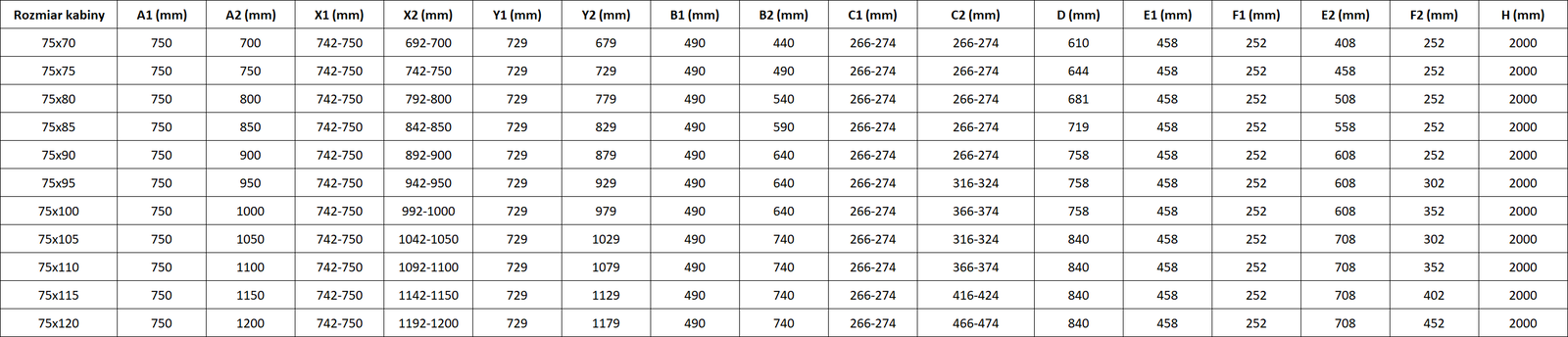 Dušo kabinos, durys ir sienelės yra standartiškai pritaikytos montuoti ant nustatytų matmenų dušo padėklų. Būtent šie matmenys nurodomi gaminio pavadinime arba aprašyme. Tačiau atkreipkite dėmesį, kad faktiniai elementų matmenys gali šiek tiek skirtis nuo vardinių verčių. Planuojant montuoti tiesiai ant grindų, rekomenduojama atidžiai patikrinti išorinius matmenis ir elementų išdėstymą pagal techninį brėžinį.