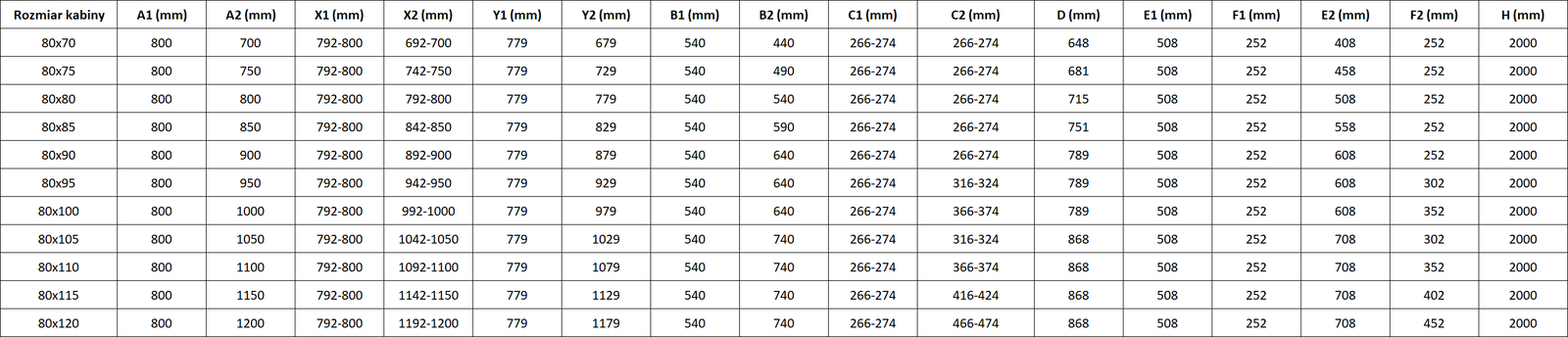 Dušo kabinos, durys ir sienelės yra standartiškai pritaikytos montuoti ant nustatytų matmenų dušo padėklų. Būtent šie matmenys nurodomi gaminio pavadinime arba aprašyme. Tačiau atkreipkite dėmesį, kad faktiniai elementų matmenys gali šiek tiek skirtis nuo vardinių verčių. Planuojant montuoti tiesiai ant grindų, rekomenduojama atidžiai patikrinti išorinius matmenis ir elementų išdėstymą pagal techninį brėžinį.