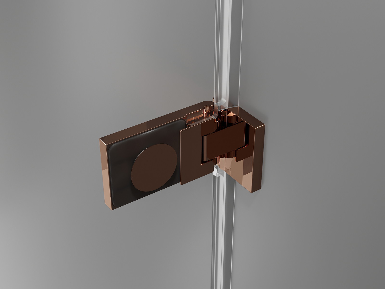 Spaustukai ir vyriai pagaminti iš labai patvaraus žalvario, papildomai sukuriantys lygią stiklo plokštumą. Tai puikus pasirinkimas, jungiantis eleganciją, patvarumą ir šiuolaikinį dizainą. Tokie sprendimai prideda dušo estetikai ir tuo pačiu palengvina švaros palaikymą.
