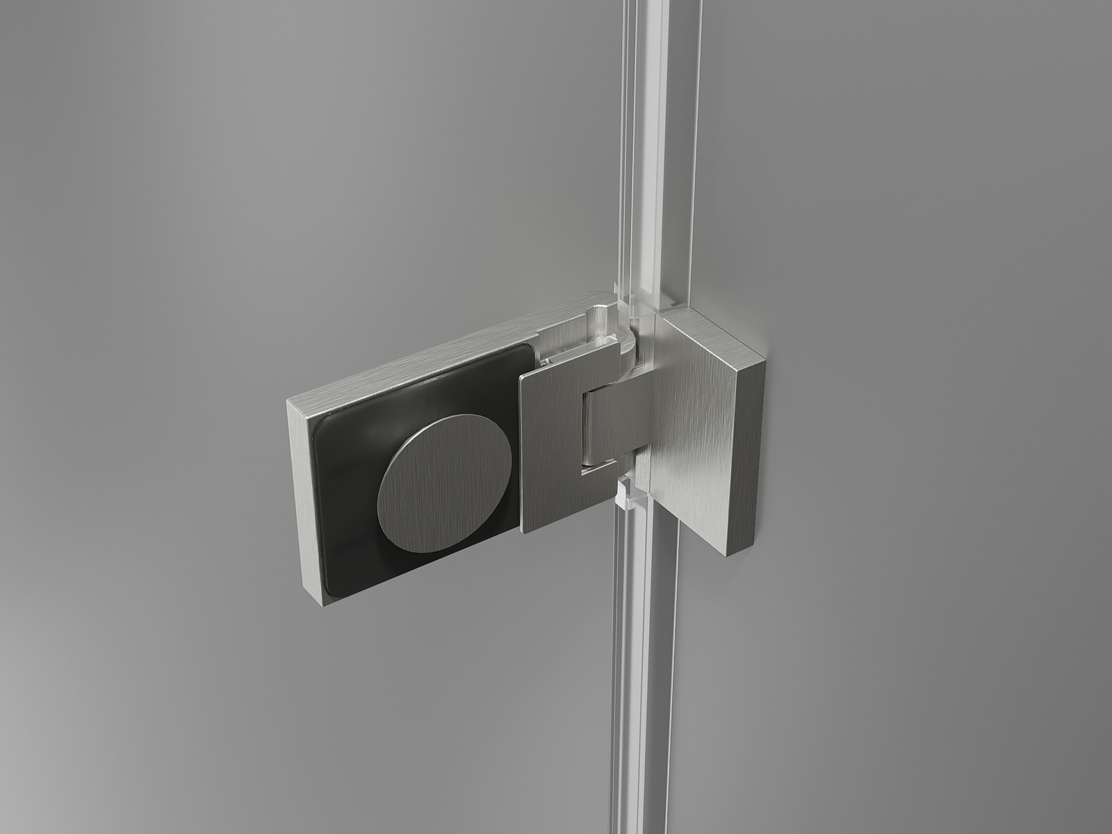 Spaustukai ir vyriai pagaminti iš labai patvaraus žalvario, papildomai sukuriantys lygią stiklo plokštumą. Tai puikus pasirinkimas, jungiantis eleganciją, patvarumą ir šiuolaikinį dizainą. Tokie sprendimai prideda dušo estetikai ir tuo pačiu palengvina švaros palaikymą.