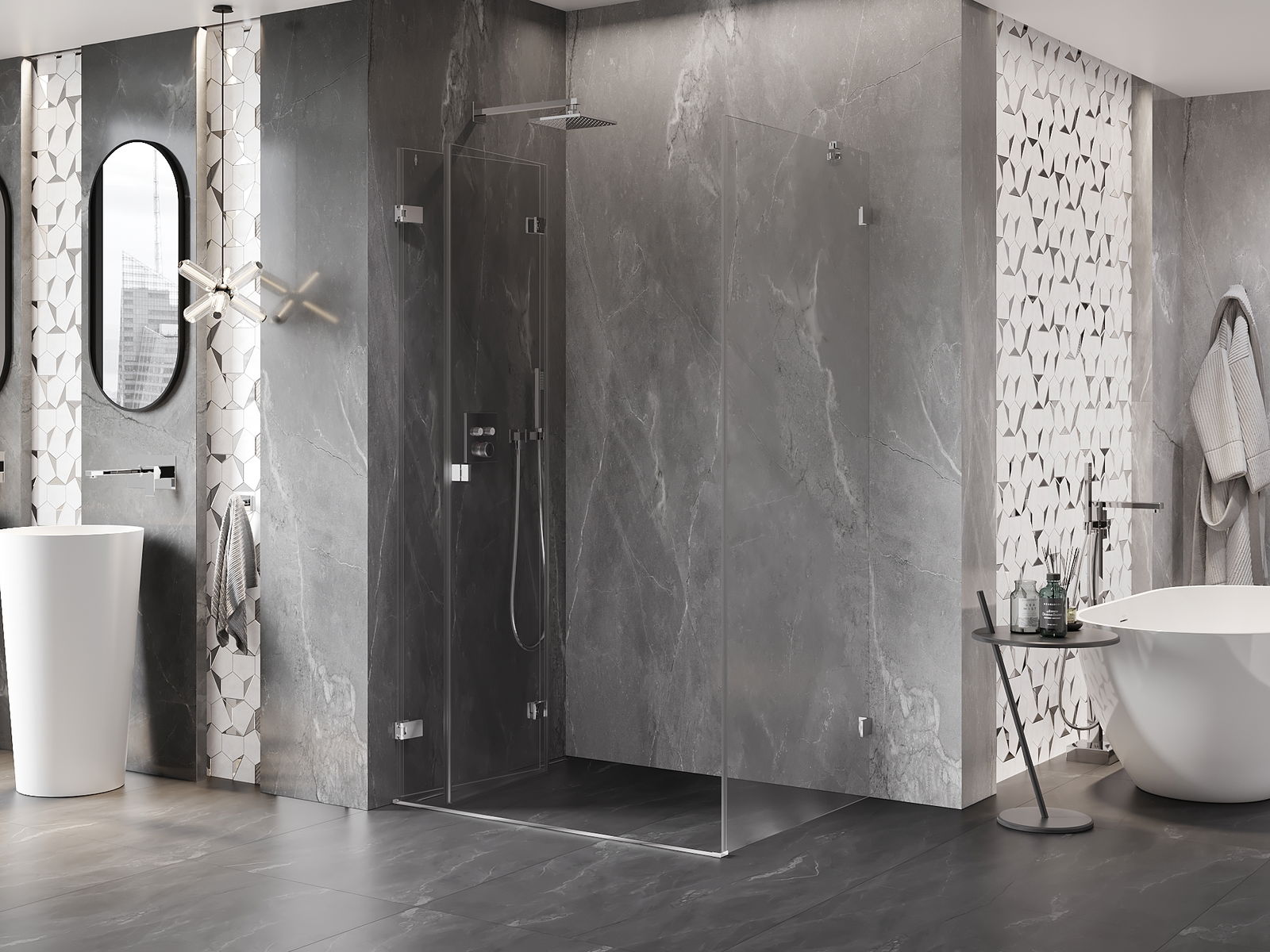 Produktą, atsižvelgiant į poreikius, galima sumontuoti tiek ant dušo padėklo, tiek tiesiogiai ant grindų. Universalus montavimo būdas leidžia pritaikyti produktą įvairių tipų vonios kambariams ir erdvės konfigūracijoms.