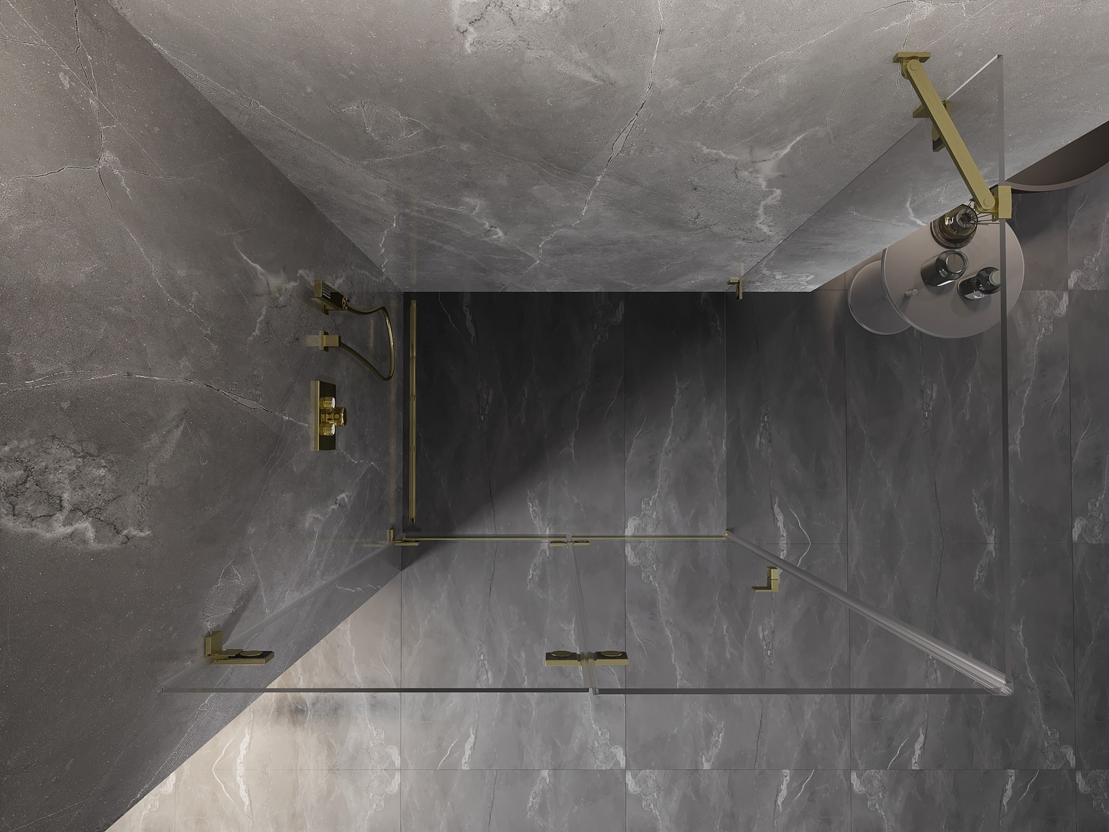 Mexen Lunar-F sulankstoma kairioji dušo kabina 95 x 90 cm, permatoma, šlifuotas auksas - 836-095-090-55-00-L