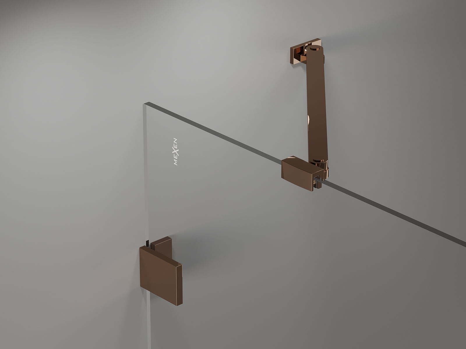 Spaustukai ir vyriai pagaminti iš labai patvaraus žalvario, papildomai sukuriantys lygią stiklo plokštumą. Tai puikus pasirinkimas, jungiantis eleganciją, patvarumą ir šiuolaikinį dizainą. Tokie sprendimai prideda dušo estetikai ir tuo pačiu palengvina švaros palaikymą.