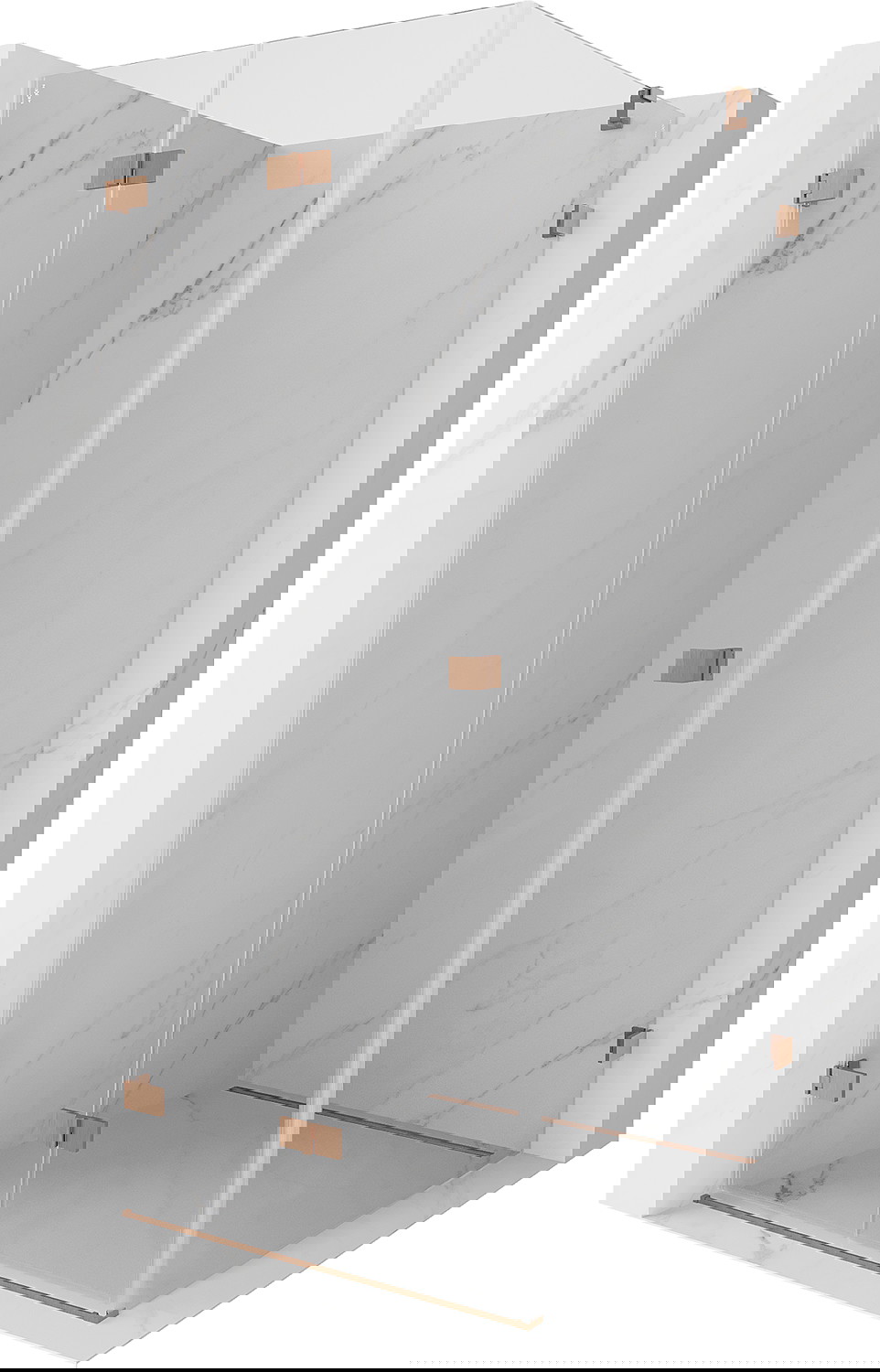 Spaustukai ir vyriai pagaminti iš labai patvaraus žalvario, papildomai sukuriantys lygią stiklo plokštumą. Tai puikus pasirinkimas, jungiantis eleganciją, patvarumą ir šiuolaikinį dizainą. Tokie sprendimai prideda dušo estetikai ir tuo pačiu palengvina švaros palaikymą.