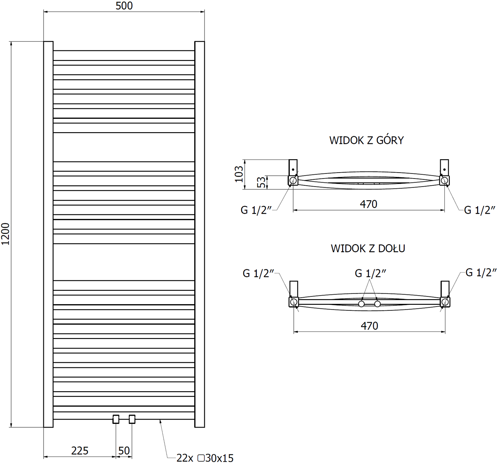 - 4xG ½″ viršuje ir apačioje, dešinėje arba kairėje