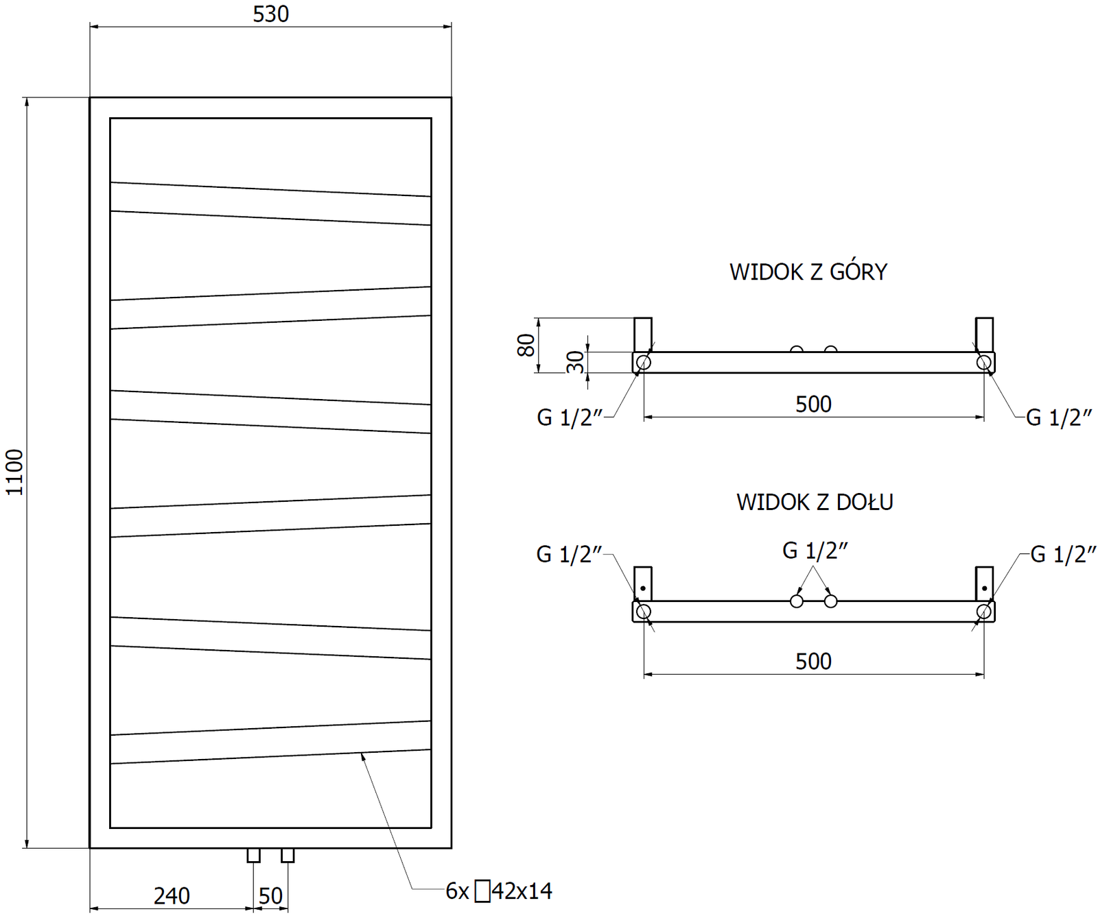- 4xG ½″ iš viršaus ir apačios dešinėje arba kairėje