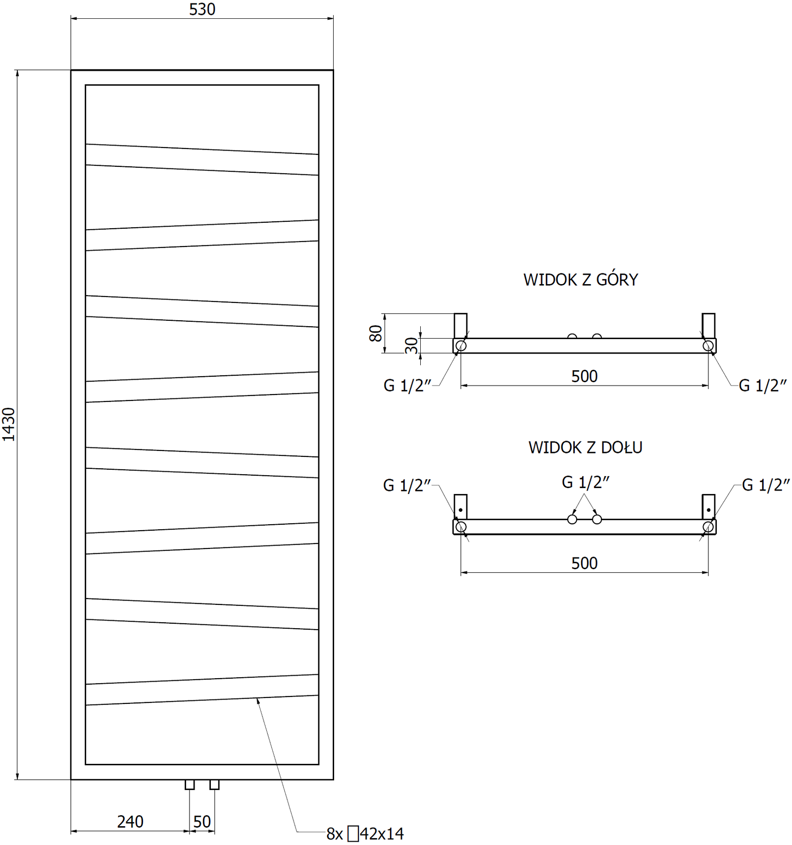 - 4xG ½″ iš viršaus ir apačios dešinėje arba kairėje pusėje