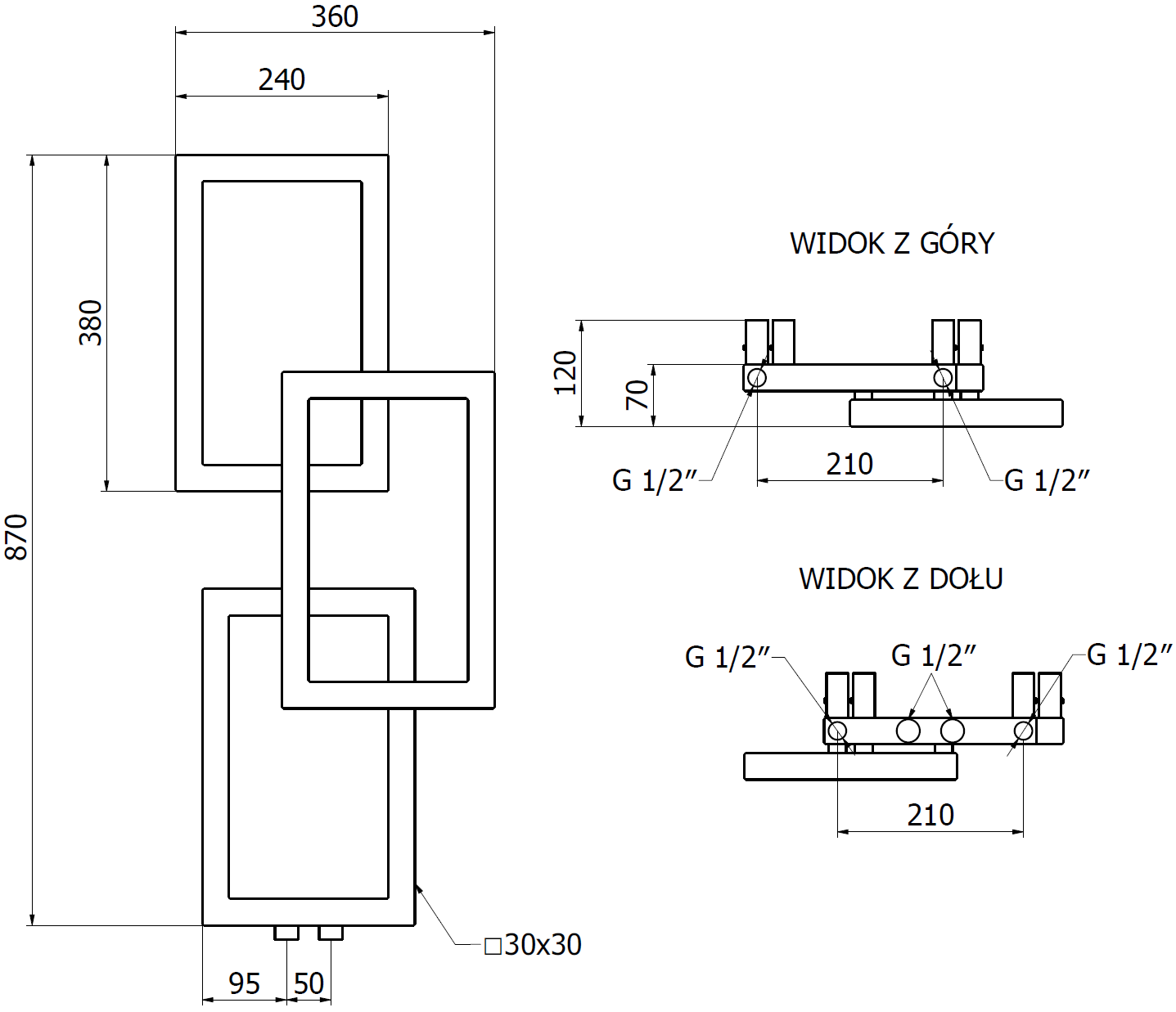 - 4xG ½″ iš viršaus ir apačios dešinėje arba kairėje