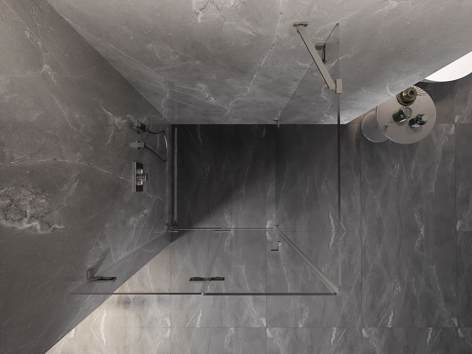 Galimybė sulenkti duris, tiek į išorę, tiek į vidų, leidžia gauti daugiau erdvės nenaudojant dušo. Tai yra idealus sprendimas mažesnėms vonios kambariams, maksimaliai išnaudojantis turimą plotą.