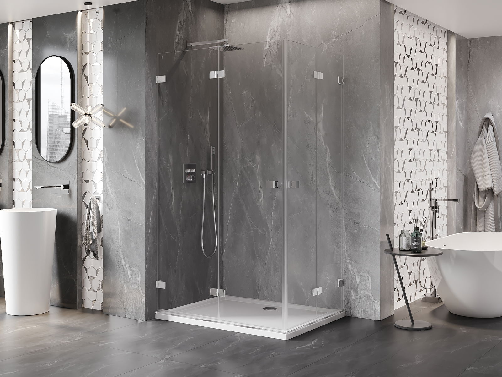 Produktą, atsižvelgiant į poreikius, galima sumontuoti tiek ant dušo padėklo, tiek tiesiogiai ant grindų. Universalus montavimo būdas leidžia pritaikyti produktą įvairių tipų vonios kambariams ir erdvės konfigūracijoms.