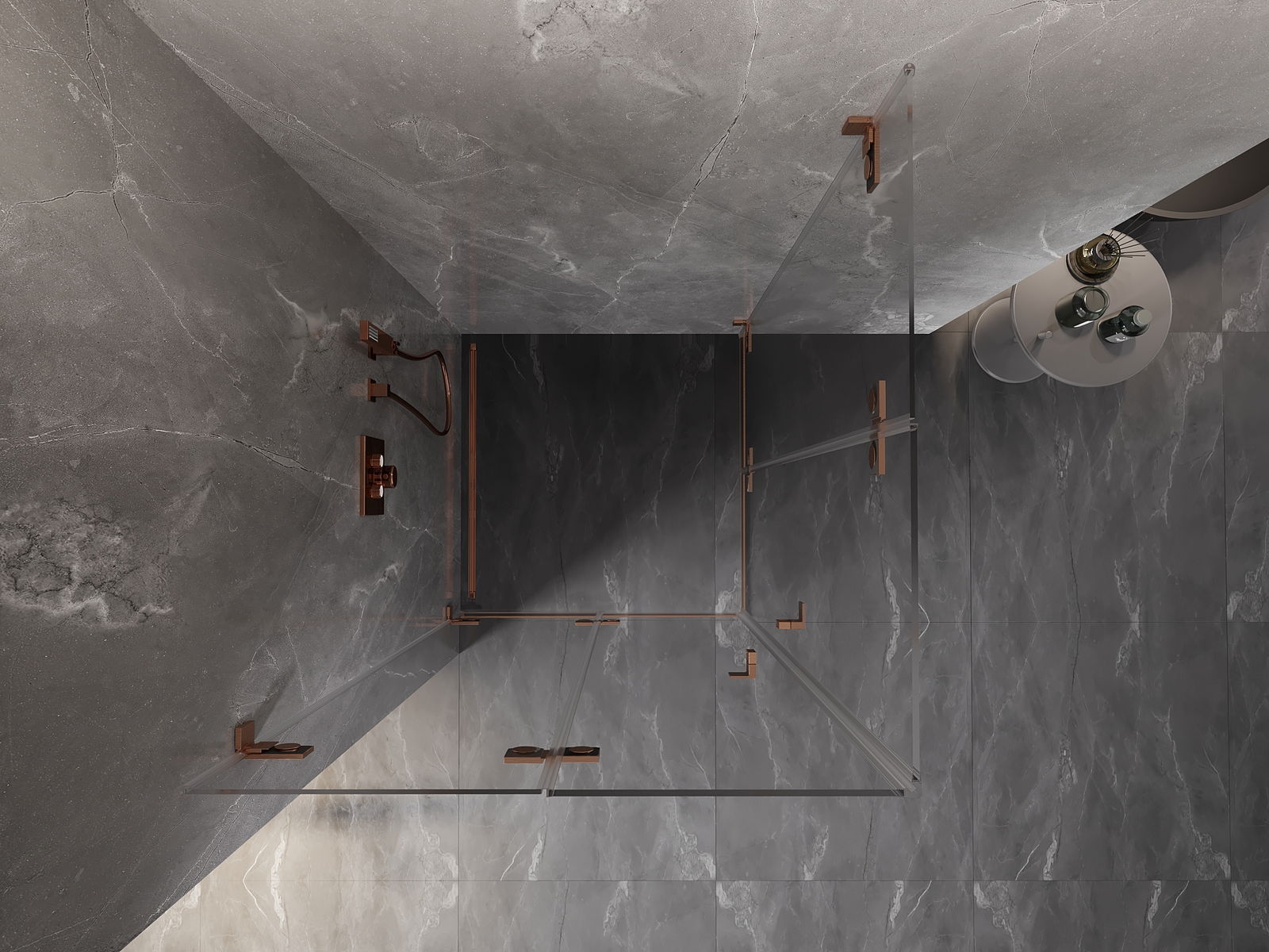 Mexen Lunar-F Duo sulankstoma dušo kabina 95 x 95 cm, permatomas, šlifuotas varis - 836-095L-095P-65-00