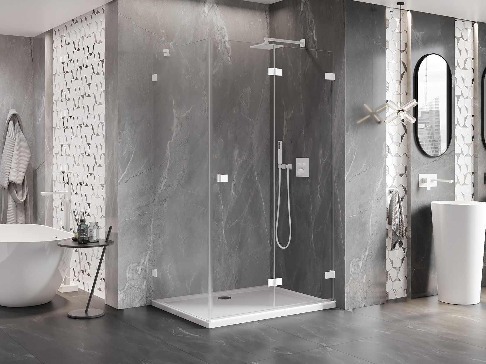 Galimybė sulenkti duris, tiek į išorę, tiek į vidų, leidžia gauti daugiau erdvės nenaudojant dušo. Tai yra idealus sprendimas mažesnėms vonios kambariams, maksimaliai išnaudojantis turimą plotą.