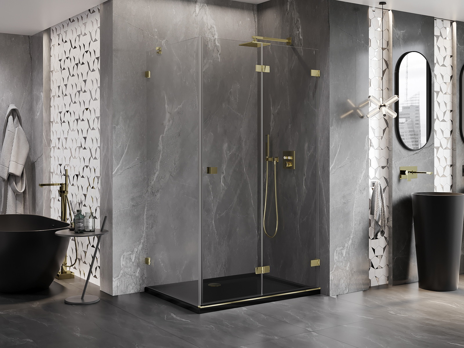 Mexen Lunar-F sulankstoma dušo kabina dešinė 100 x 80 cm, skaidri, auksinė - 836-100-080-50-00-P