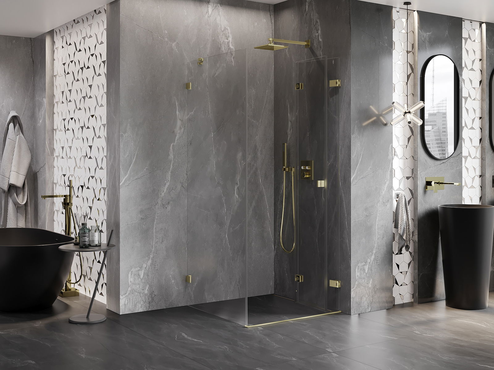 Spaustukai ir vyriai pagaminti iš labai patvaraus žalvario, papildomai sukuriantys lygią stiklo plokštumą. Tai puikus pasirinkimas, jungiantis eleganciją, patvarumą ir šiuolaikinį dizainą. Tokie sprendimai prideda dušo estetikai ir tuo pačiu palengvina švaros palaikymą.