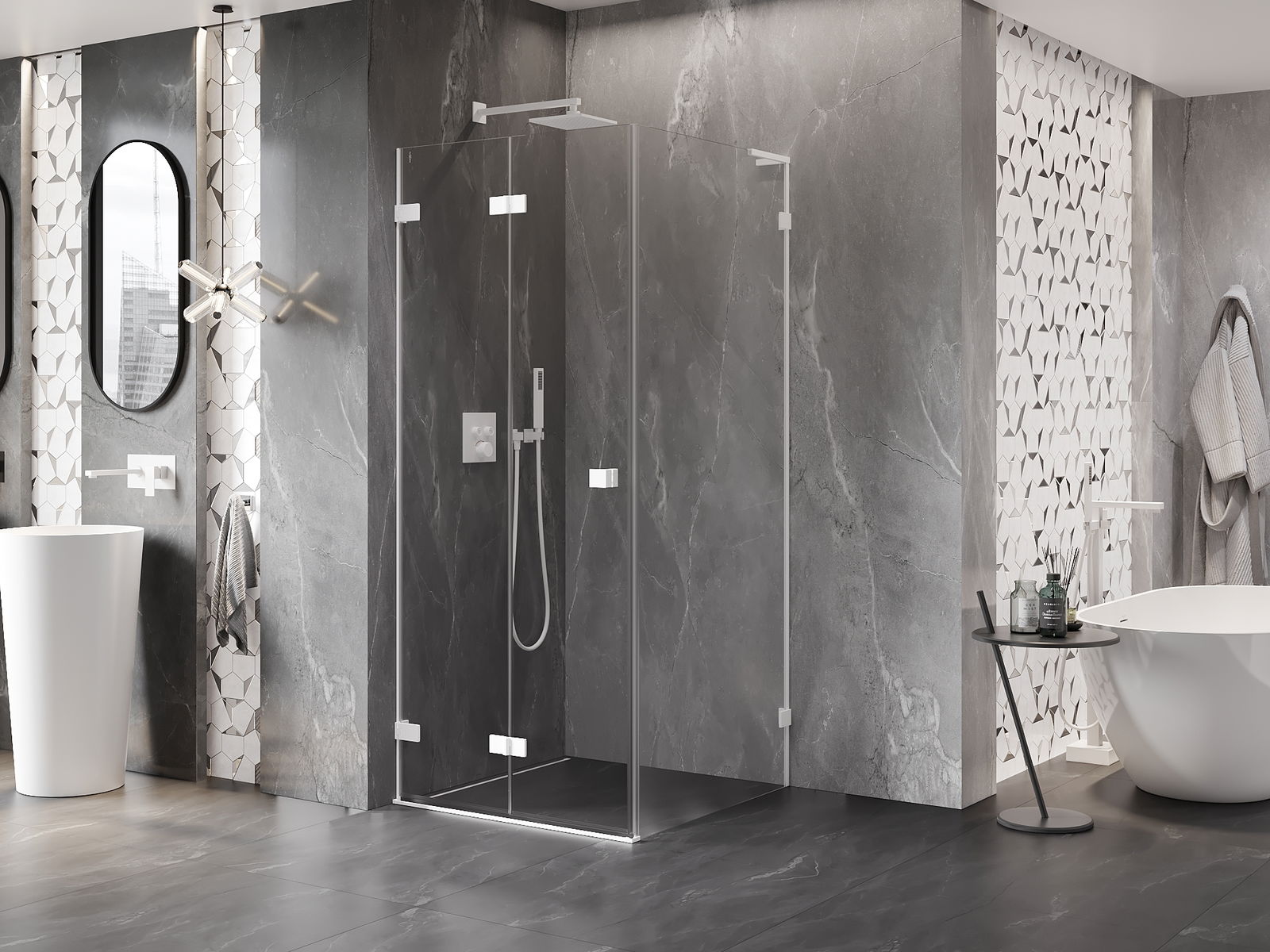 Galimybė sulenkti duris, tiek į išorę, tiek į vidų, leidžia gauti daugiau erdvės nenaudojant dušo. Tai yra idealus sprendimas mažesnėms vonios kambariams, maksimaliai išnaudojantis turimą plotą.