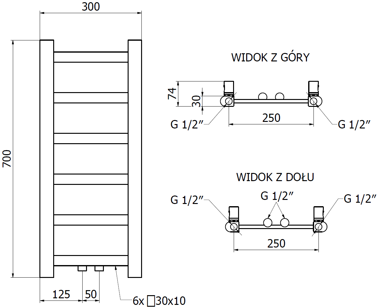 - 4xG ½″ iš viršaus ir apačios iš dešinės arba kairės pusės
