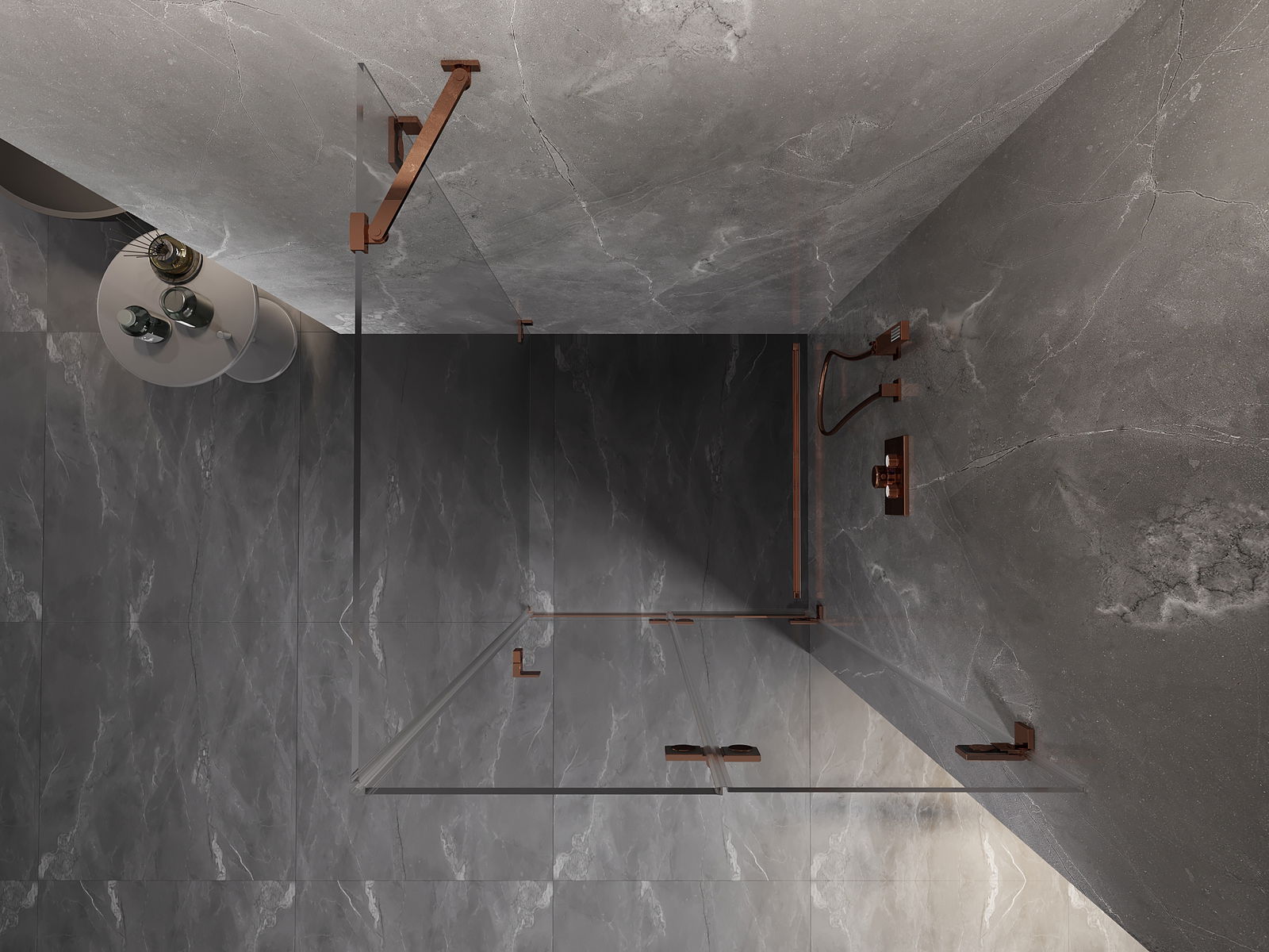 Mexen Lunar-F sulankstoma dušo kabina dešinė 90 x 90 cm, skaidri, rausvas auksas- 836-090-090-60-00-P