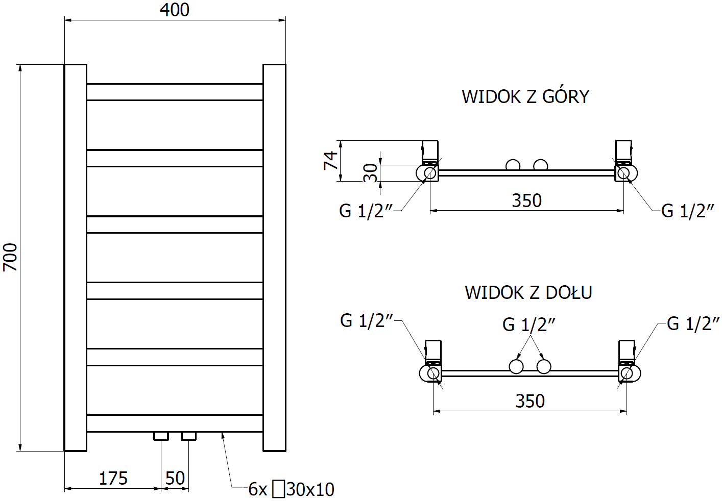 Mexen Bolt vonios radiatorių 700 x 400 mm, 165 W, juodas - W126-0700-400-00-70