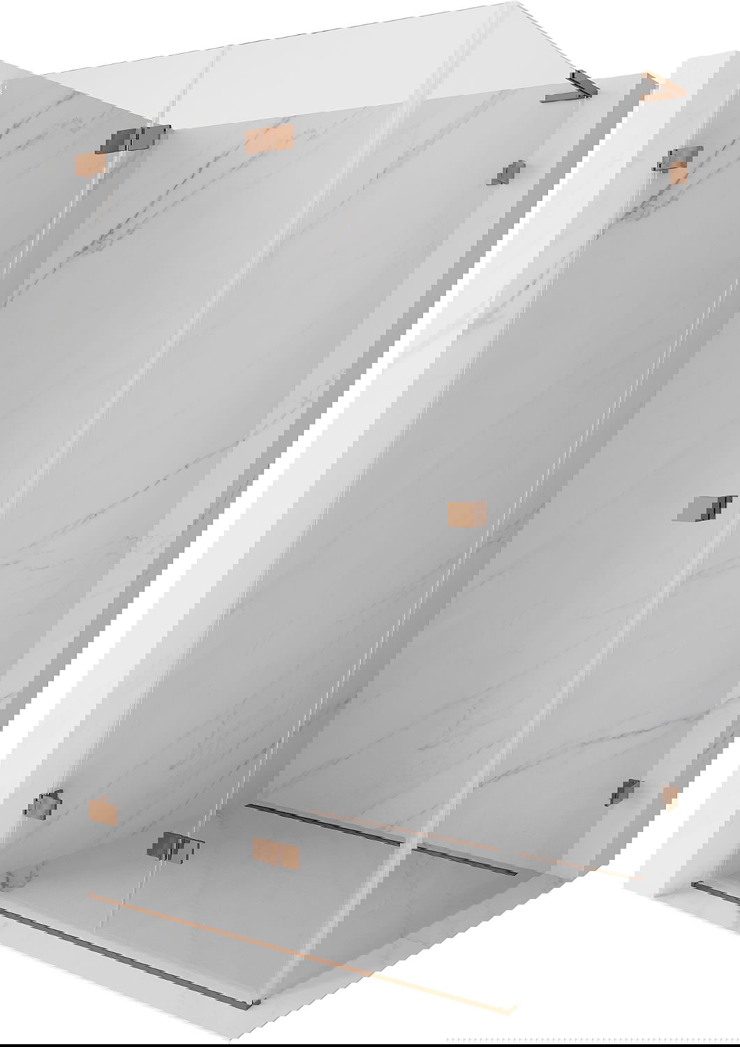 Spaustukai ir vyriai pagaminti iš labai patvaraus žalvario, papildomai sukuriantys lygią stiklo plokštumą. Tai puikus pasirinkimas, jungiantis eleganciją, patvarumą ir šiuolaikinį dizainą. Tokie sprendimai prideda dušo estetikai ir tuo pačiu palengvina švaros palaikymą.