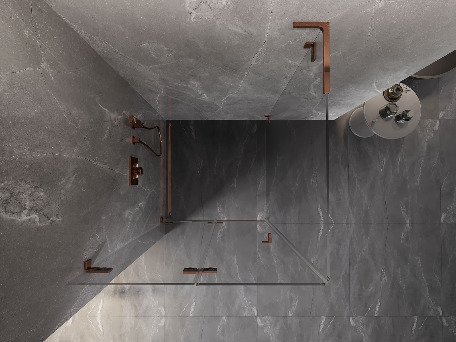 Mexen Lunar-F L kairinė dušo kabina, sudedama, kairė 90 x 90 cm, skaidri, rožinis auksas - 836L-090-090-60-00-L