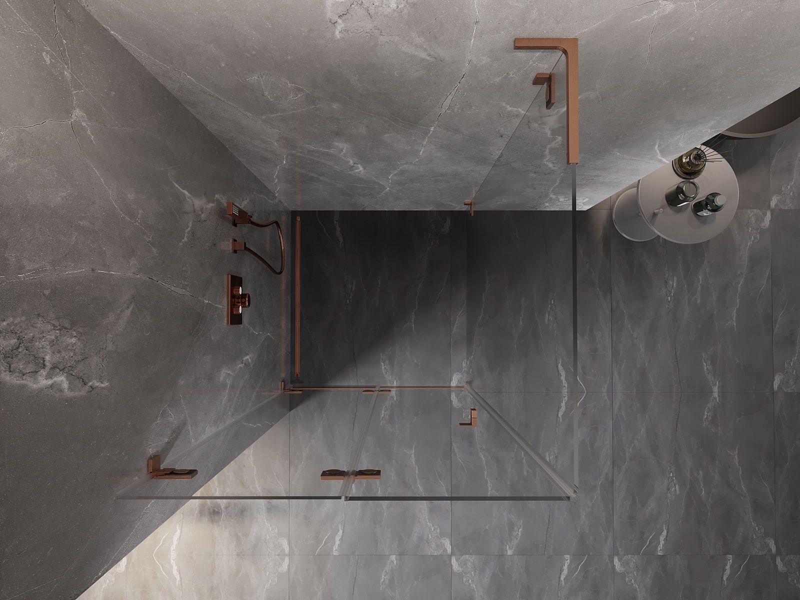 Mexen Lunar-F L sulankiojama dušo kabina kairė 70 x 70 cm, skaidri, šlifuota vario spalva - 836L-070-070-65-00-L