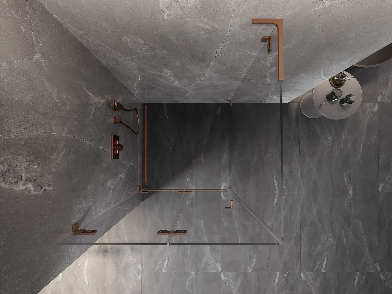 Mexen Lunar-F L sulankstoma dušo kabina, kairė, 100 x 100 cm, skaidrus, šlifuotas varis - 836L-100-100-65-00-L
