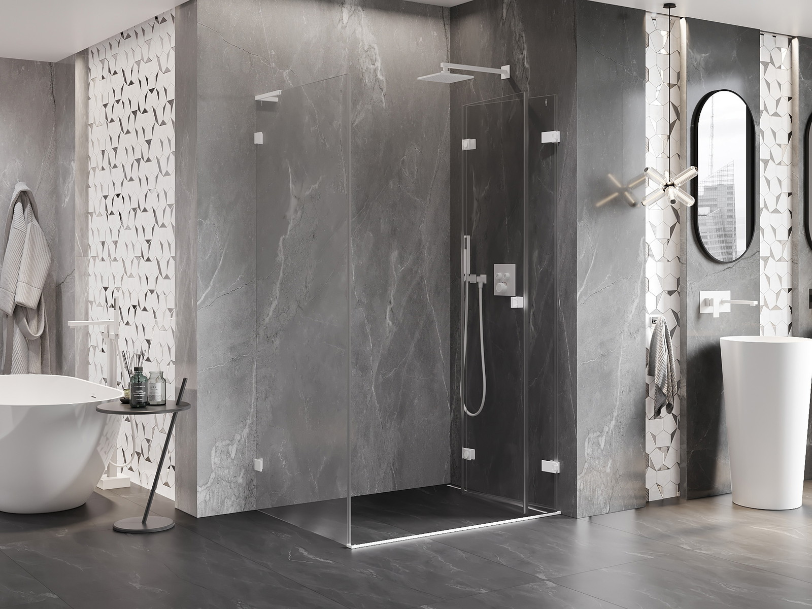 Mexen Lunar-F L sulenama dušo kabina dešinė 90 x 80 cm, skaidri, balta - 836L-090-080-20-00-P