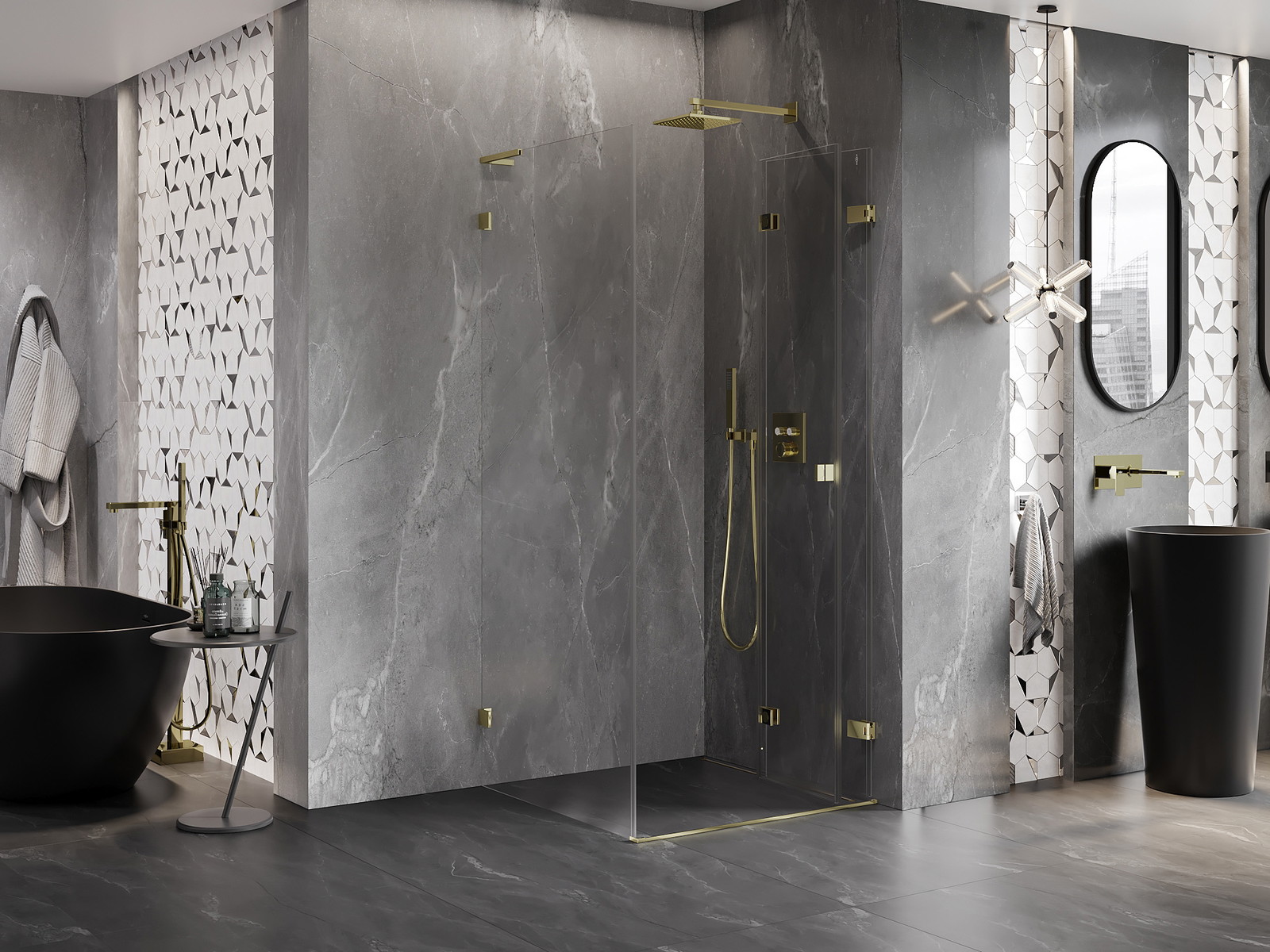 Mexen Lunar-F L - tai šiuolaikiška dešinės montavimo dušo kabina. Jos kompaktiškas dydis 80x80 cm ir 200 cm aukštis puikiai tinka bet kuriai voniai. Grūdintas 6-8 mm storio stiklas yra peršviečiamas ir padengtas danga, palengvinančia valymą, kas padidina patogumą naudoti. Auksinė apdaila pabrėžia eleganciją, o aliuminio profiliai ir nerūdijančio plieno stabilizatorius užtikrina ilgaamžiškumą. Kabina leidžia montavimą ant padėklo ar plytelių, o magnetinė juosta ir elastomeriniai sandarikliai saugo nuo vandens.