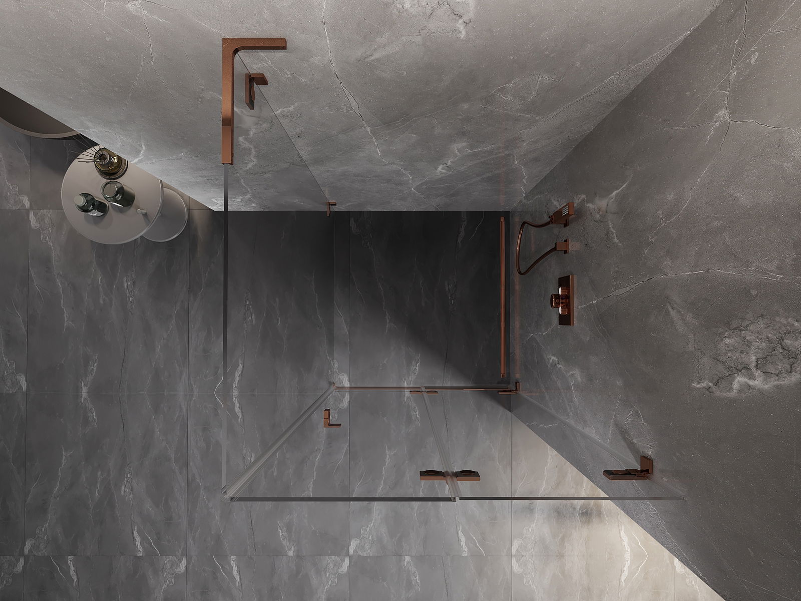 Spaustukai ir vyriai pagaminti iš labai patvaraus žalvario, papildomai sukuriantys lygią stiklo plokštumą. Tai puikus pasirinkimas, jungiantis eleganciją, patvarumą ir šiuolaikinį dizainą. Tokie sprendimai prideda dušo estetikai ir tuo pačiu palengvina švaros palaikymą.