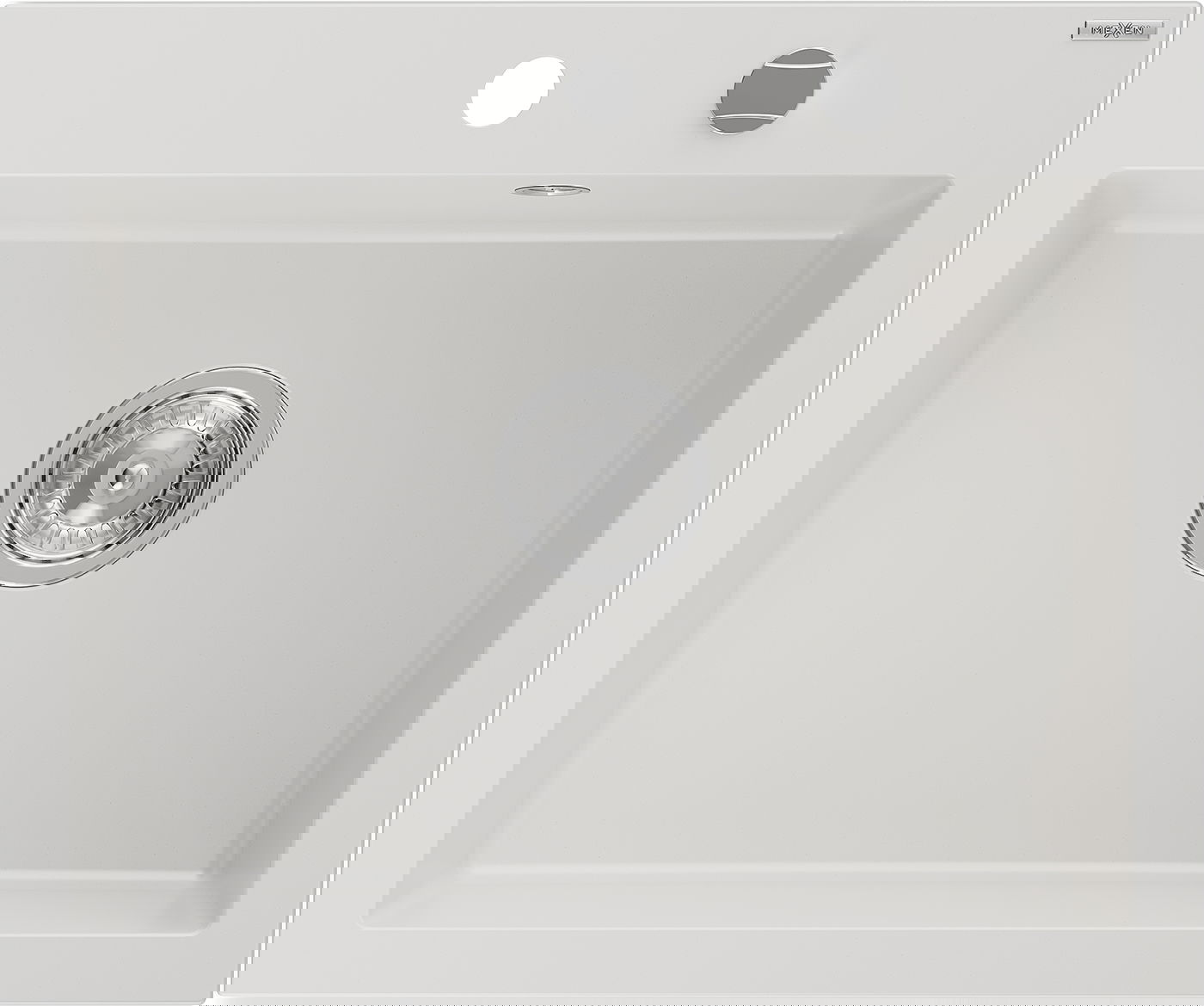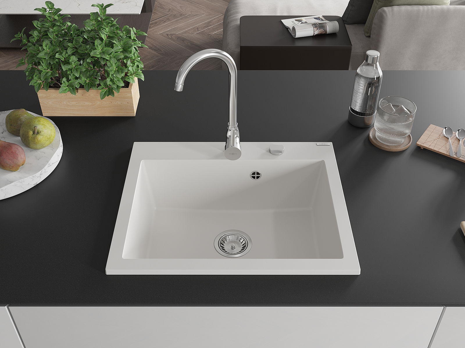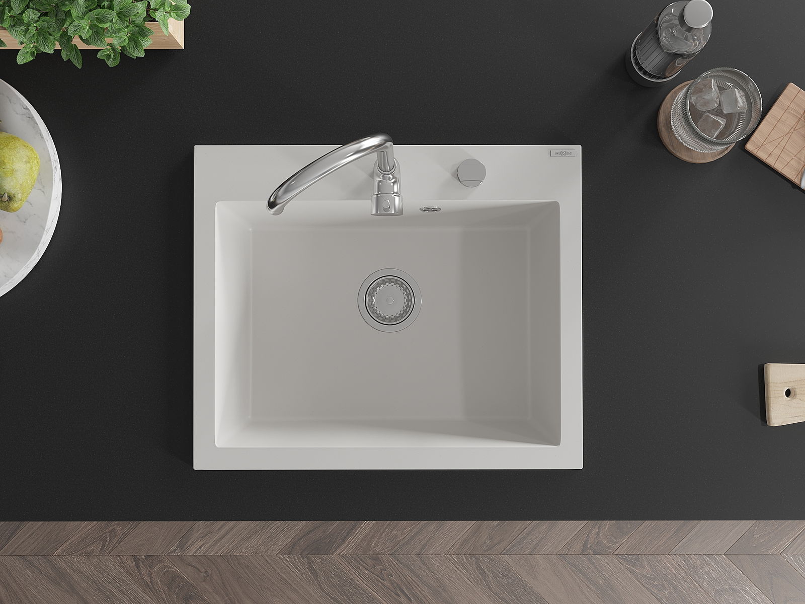 Mexen Elix granitinė kriauklė 1 skyrius 600 x 500 mm, balta, chromuotas sifonas - 6525601005-20