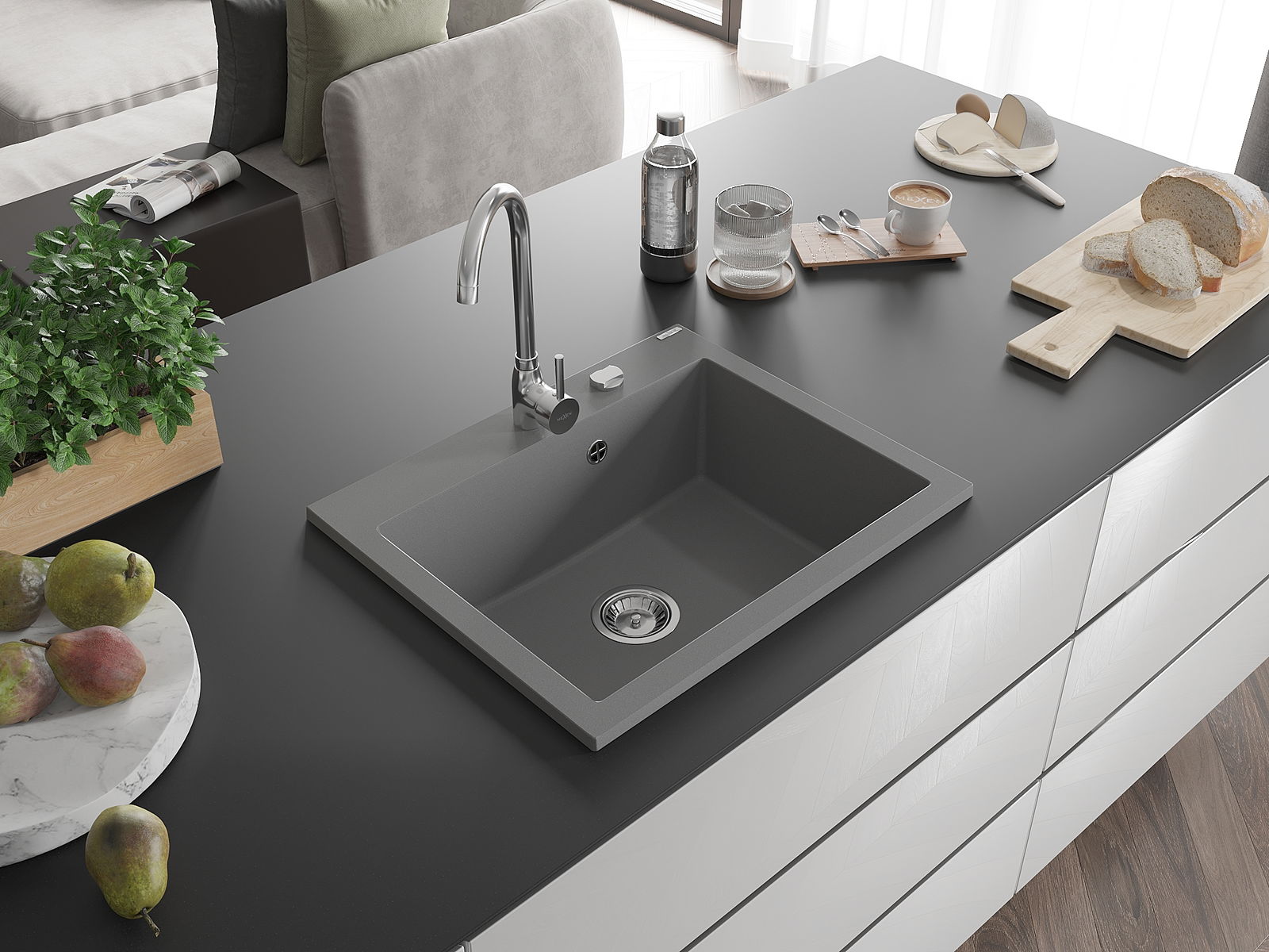Mexen Elix granitinė vienos kameros plautuvė 600 x 500 mm, pilka, chrominis sifonas - 6525601005-71