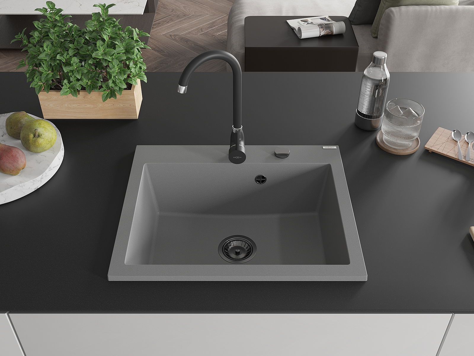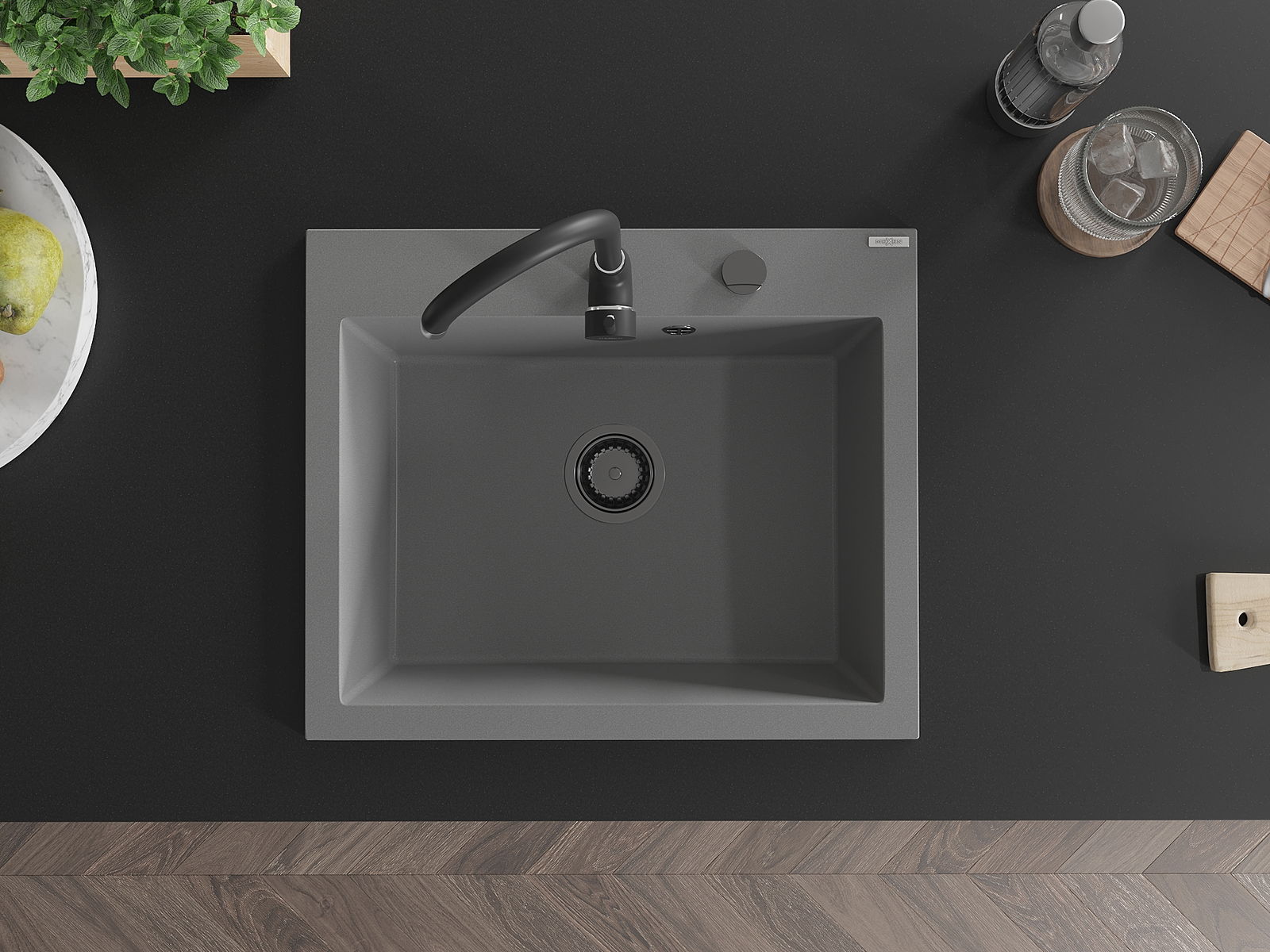 Mexen Elix granitinis kriauklė 1 skyrelis 600 x 500 mm, pilka, juodas sifonas - 6525601005-71-B