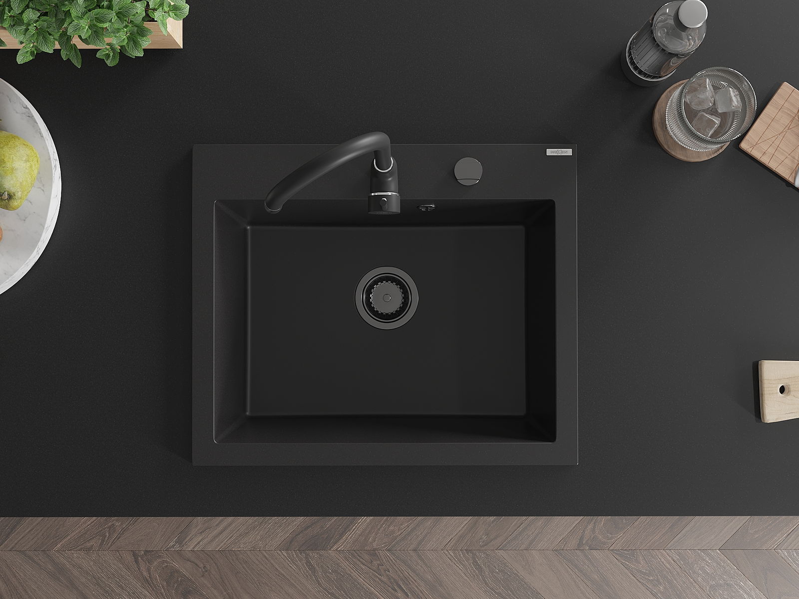 Mexen Elix granito plautuvė 1 kameros 600 x 500 mm, juoda, sifonas juodas - 6525601005-77-B