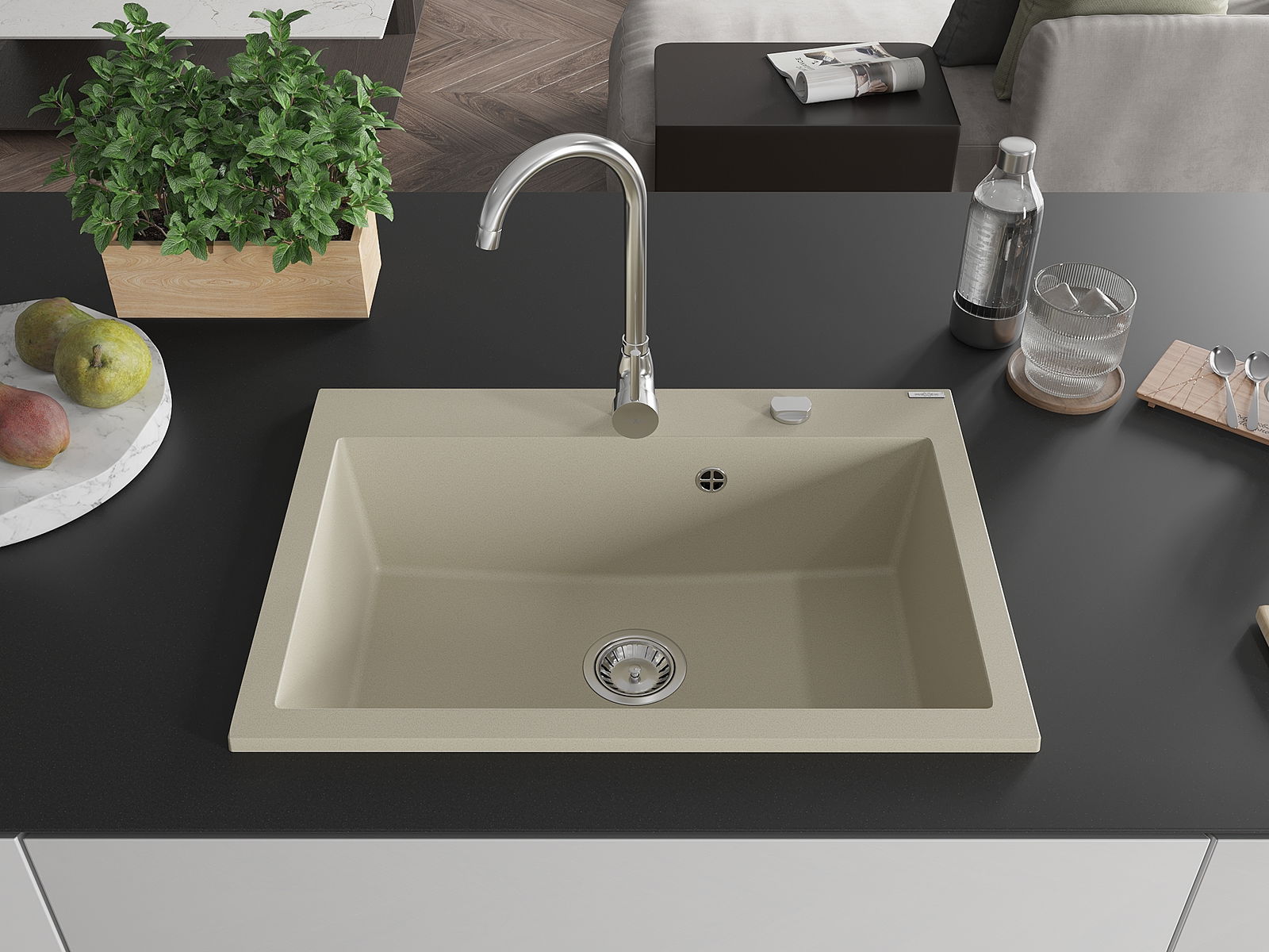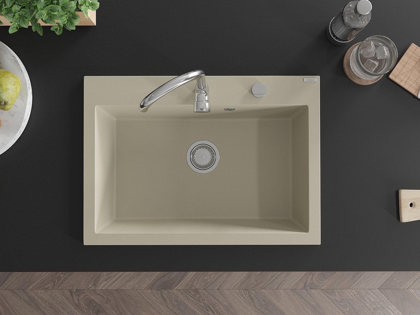 Mexen Elix granitinė plautuvė 1 skyrius 700 x 500 mm, smėlio spalvos, chrominis sifonas - 6526701005-69
