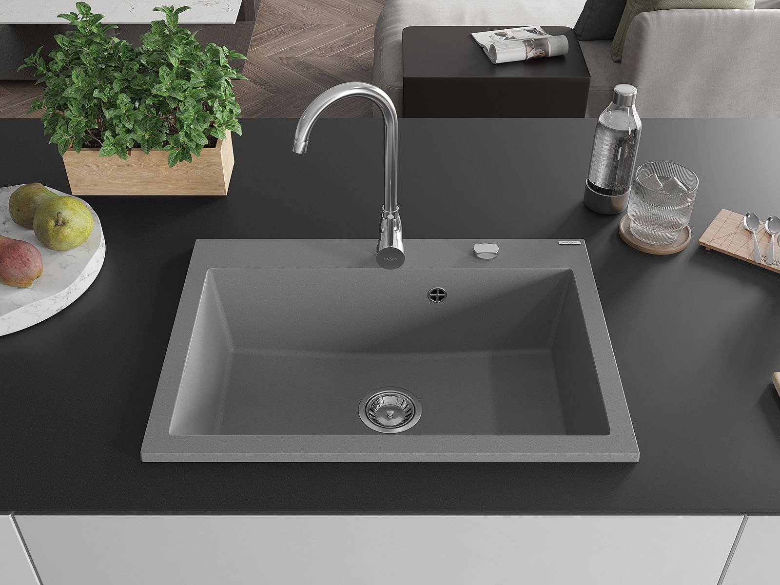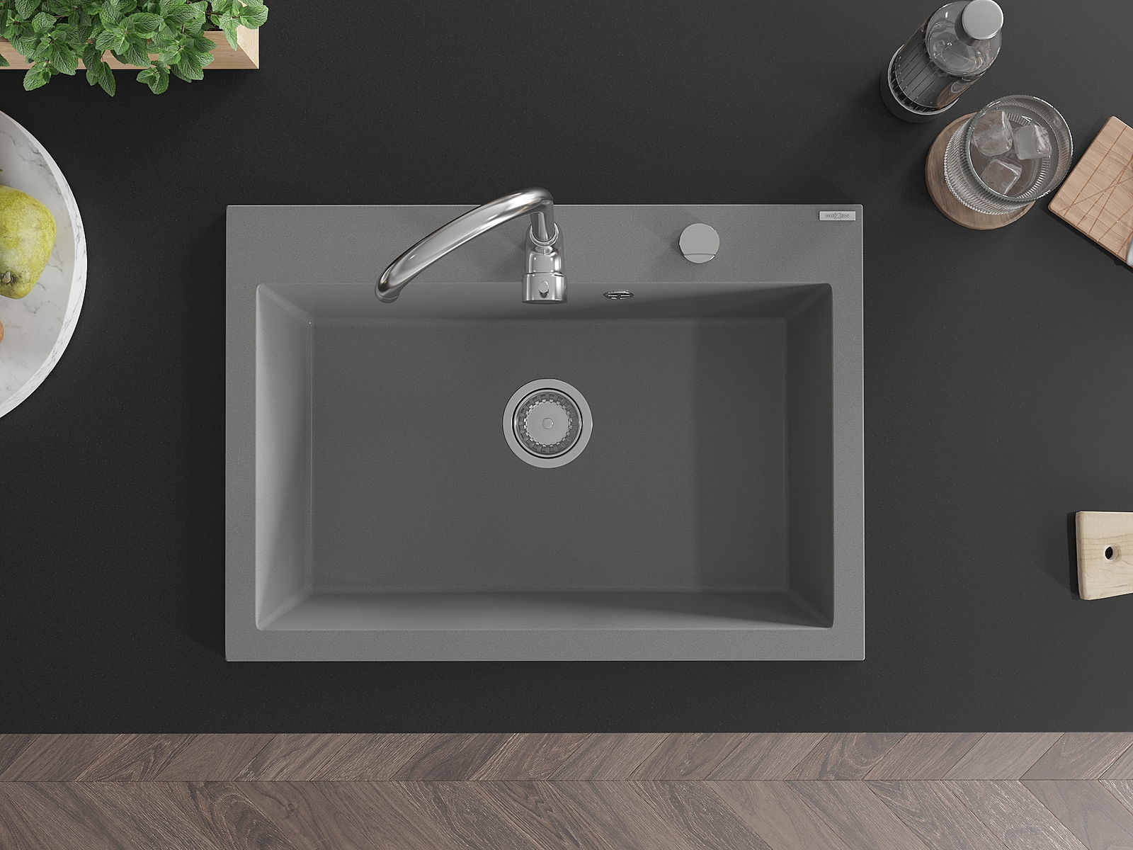 Mexen Elix vienos kameros granitinis kriauklė 700 x 500 mm, pilka, chromuotas sifonas - 6526701005-71