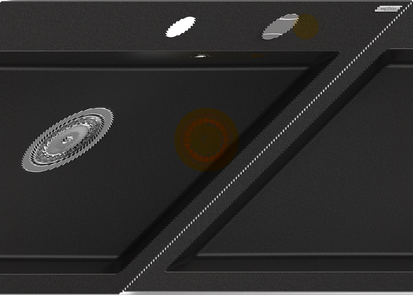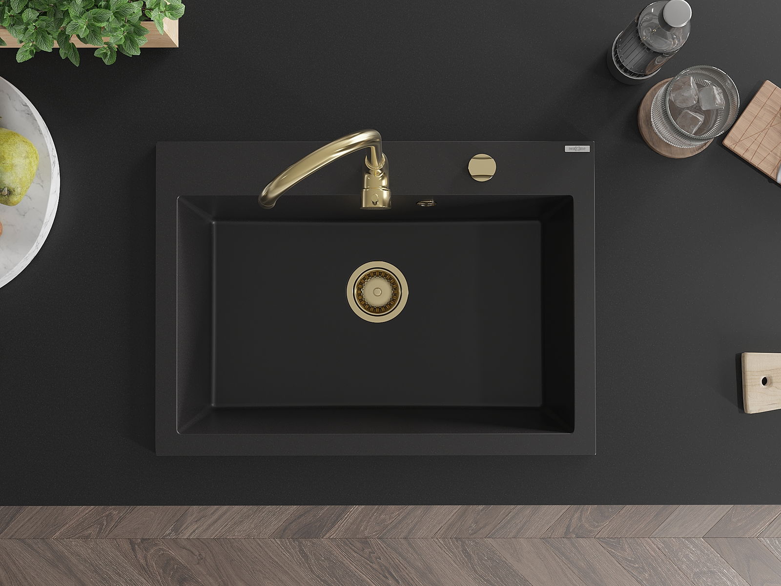 Mexen Elix granito plautuvė su viena kamera 700 x 500 mm, juoda, sifonas auksinis - 6526701005-77-G