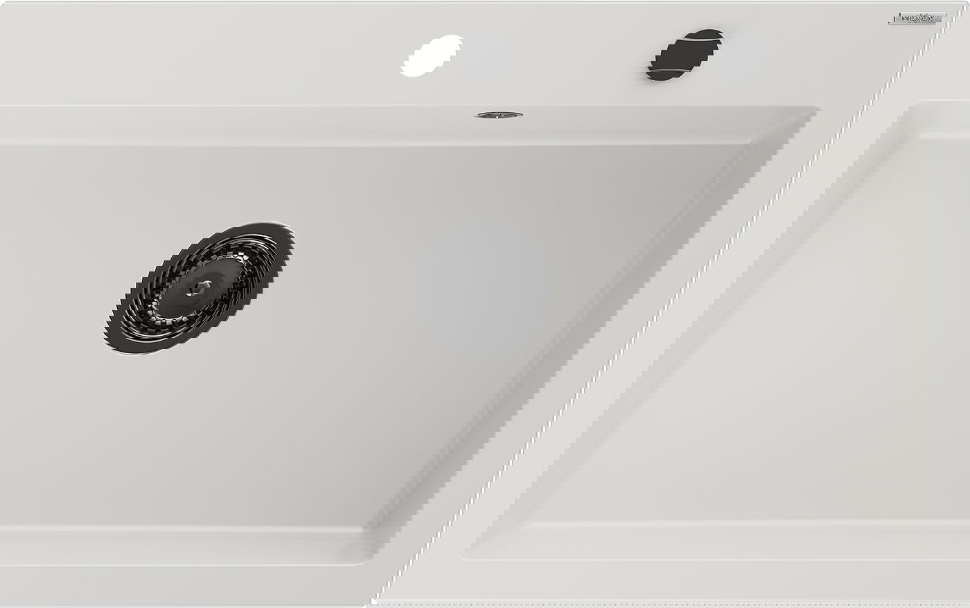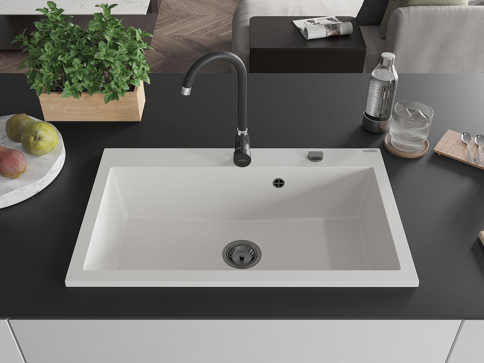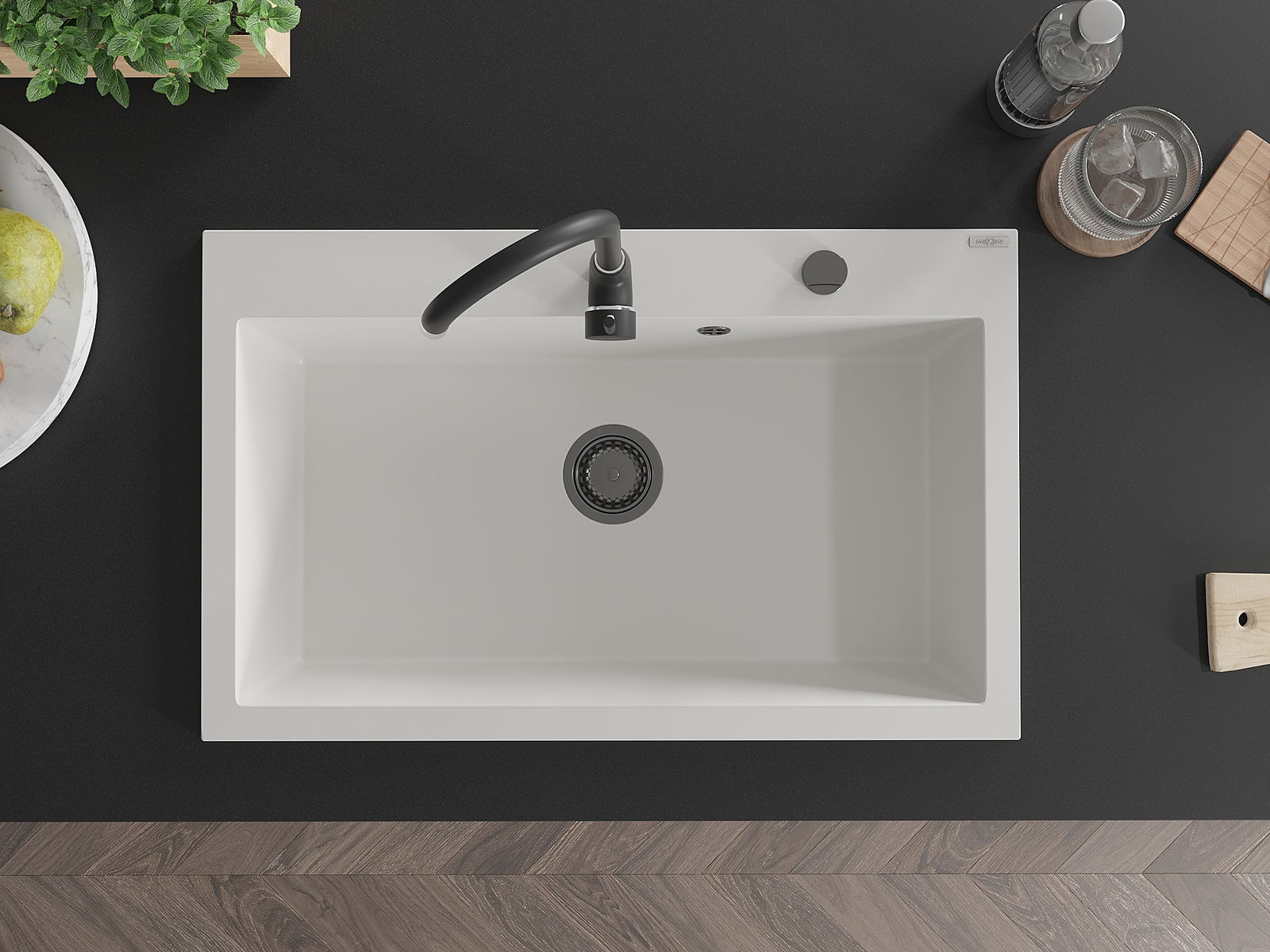 Mexen Elix granitinė virtuvės kriauklė 1 kamerų 800 x 500 mm, balta, juodas sifonas - 6527801005-20-B