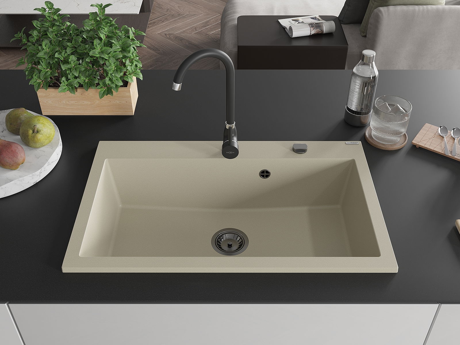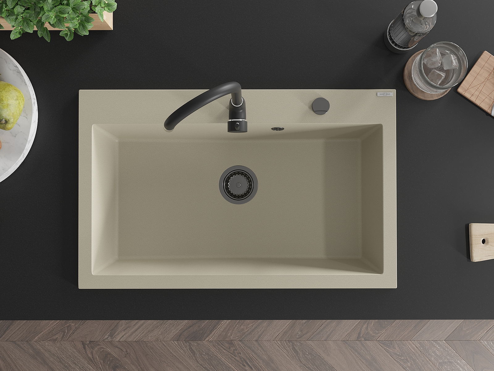 Mexen Elix granitinis vienos kameros plautuvas 800 x 500 mm, smėlio spalvos, juodas sifonas - 6527801005-69-B