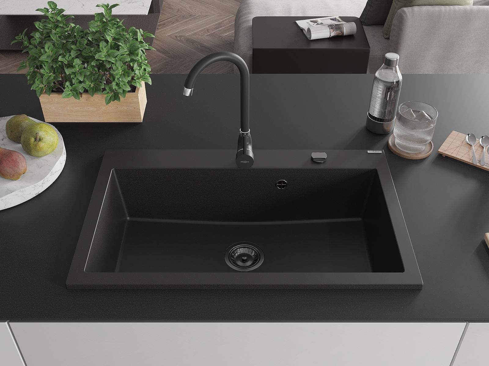 Mexen Elix grindinis plautuvas 1 kamerinis 800 x 500 mm, juodas, juodas sifonas - 6527801005-77-B