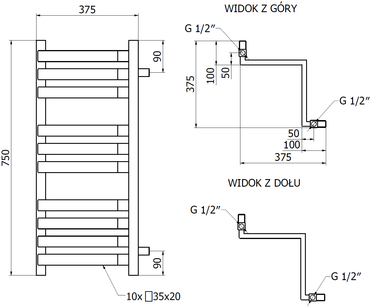 - 4xG ½″ iš viršaus ir apačios, dešinėje arba kairėje