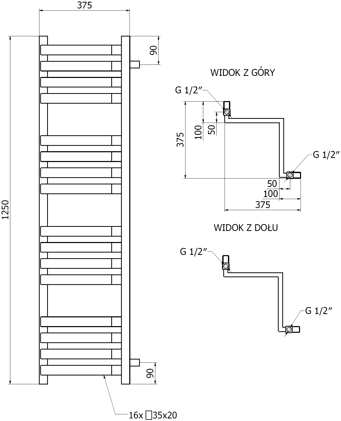 - 4xG ½″ iš viršaus ir apačios dešinėje arba kairėje pusėje