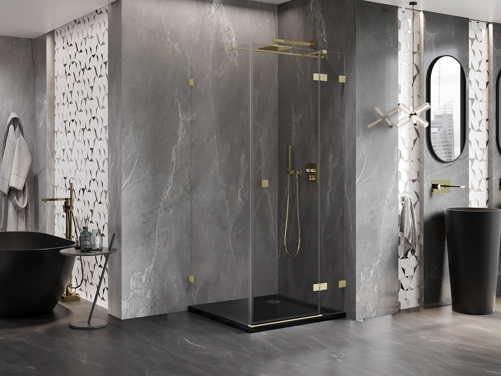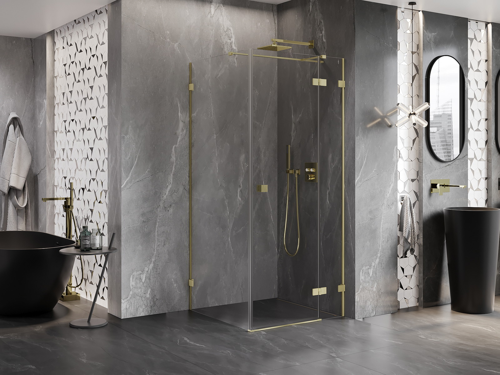 Mexen Lunar T dešinysis atidaromas dušo kabinas 110 x 110 cm, permatomas, paauksuotas šepetys - 834T-110-110-55-00-P