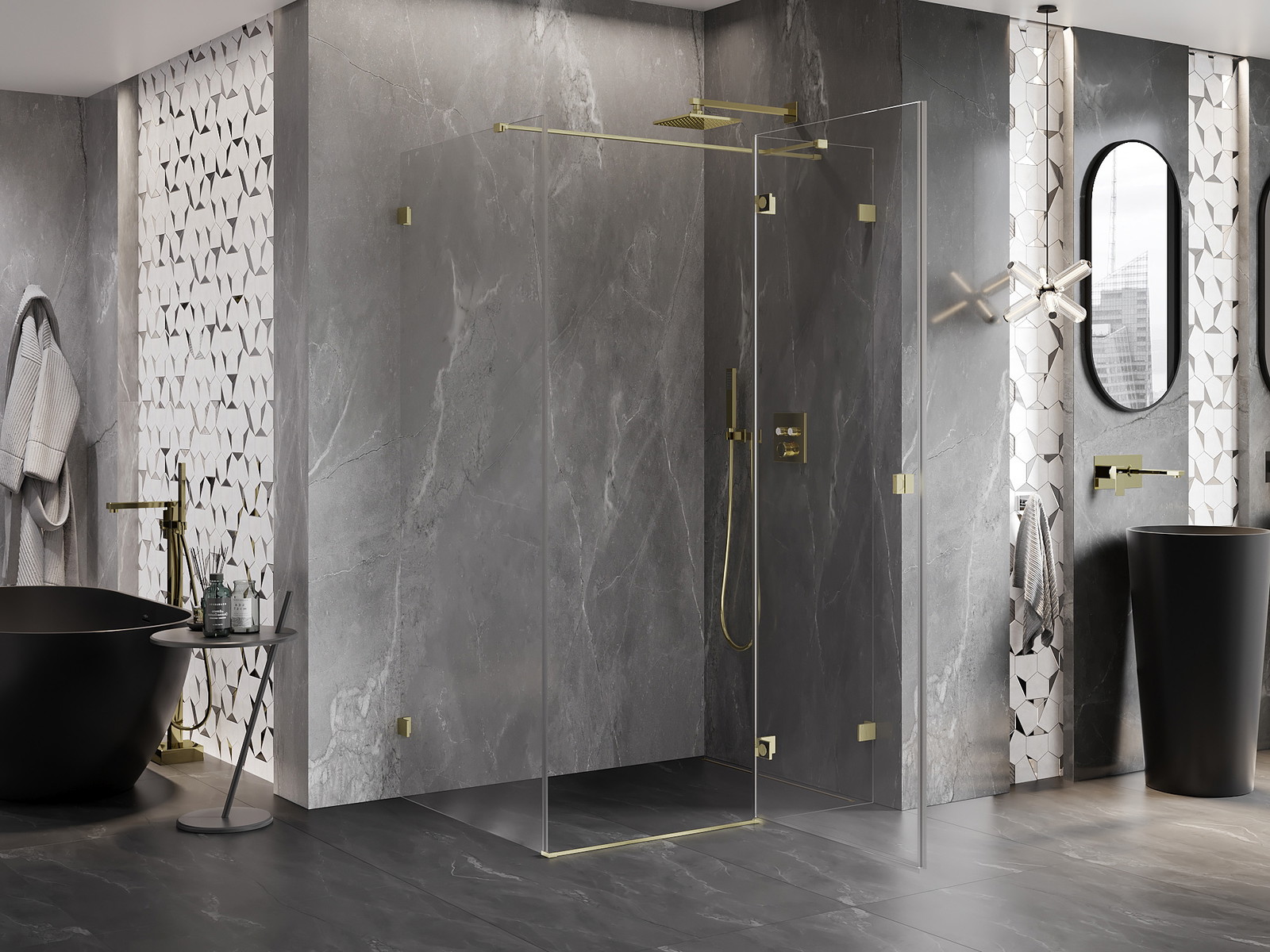 Mexen Lunar T dešinė atveriama dušo kabina 125 x 120 cm, skaidri, šlifuota auksinė - 834T-125-120-55-00-P
