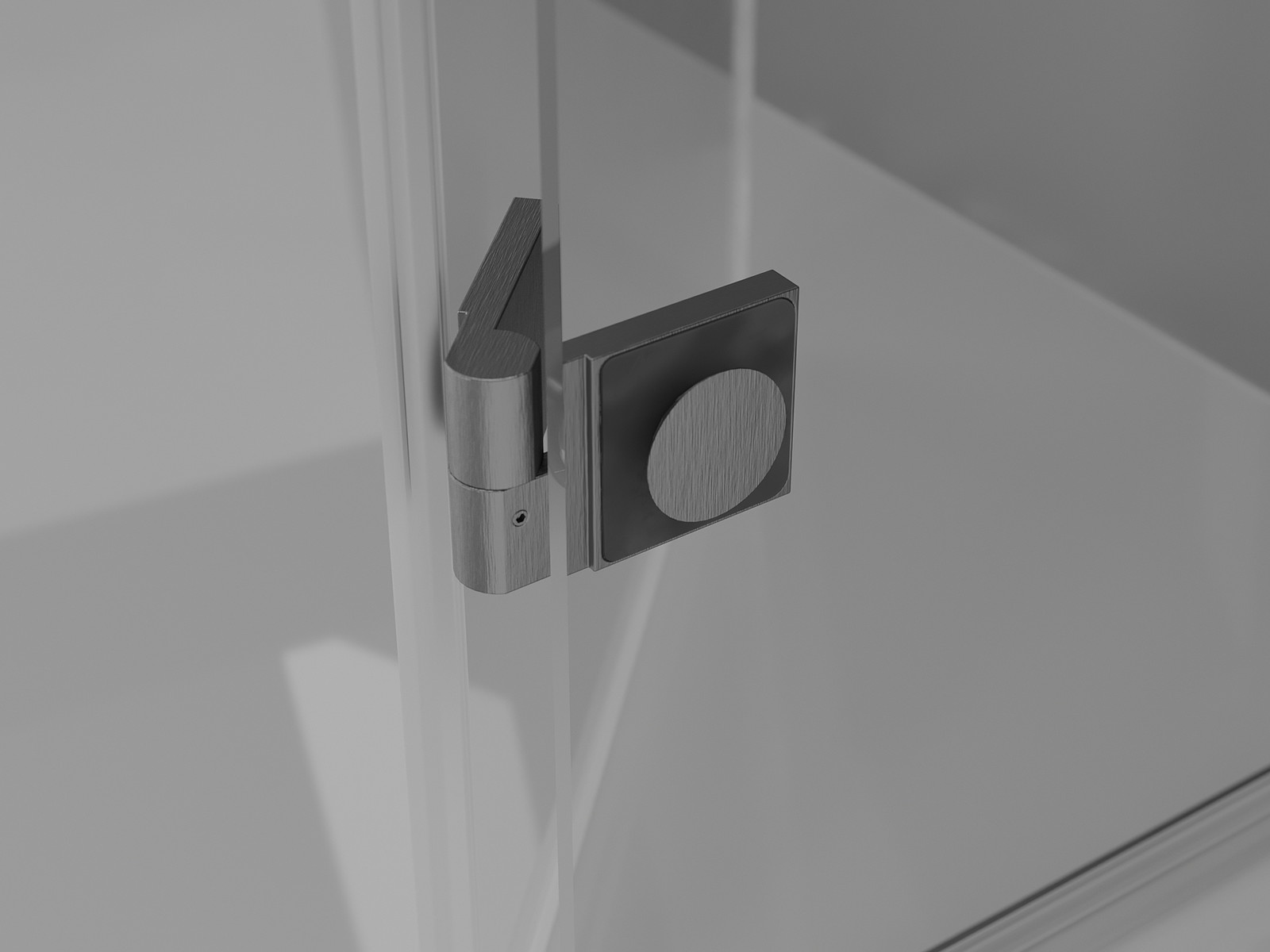 Žalvarinės rankenos ir lankstai sulygiuoti su stiklo paviršiumi