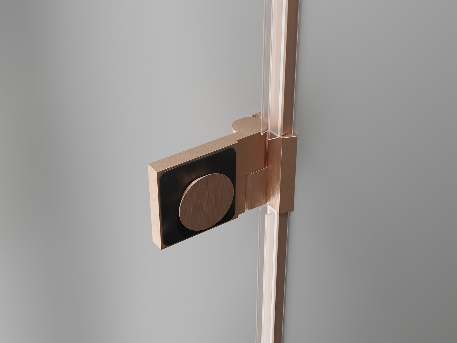 Spaustukai pagaminti iš labai patvaraus žalvario, o papildomai sudaro lygų stiklo paviršių. Tai puikus pasirinkimas, kuris sujungia eleganciją, ilgaamžiškumą ir šiuolaikinį dizainą. Dėl tokių sprendimų dušas įgauna estetikos, o kartu palengvina švaros palaikymą.