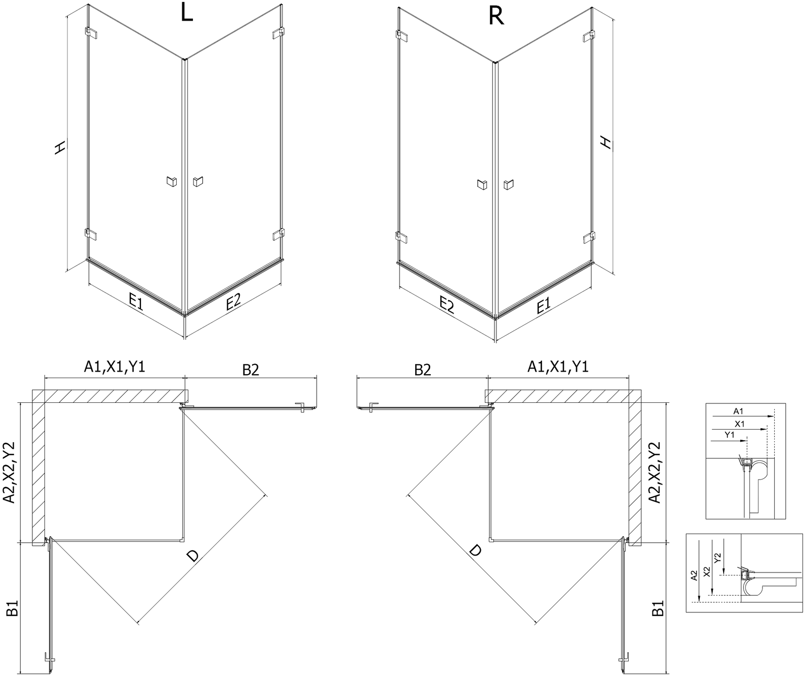 Atveriamos durys suteikia maksimalią laisvę naudojant. Jos turi tvirtus vyres, pagamintus iš patvarios medžiagos, kurie nekelia sunkumų prižiūrint švarą ir leidžia lengvai patekti į kabinos vidų.